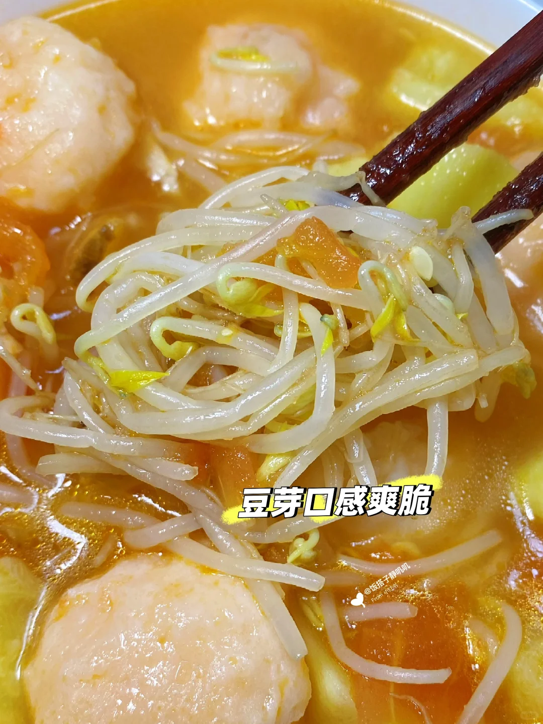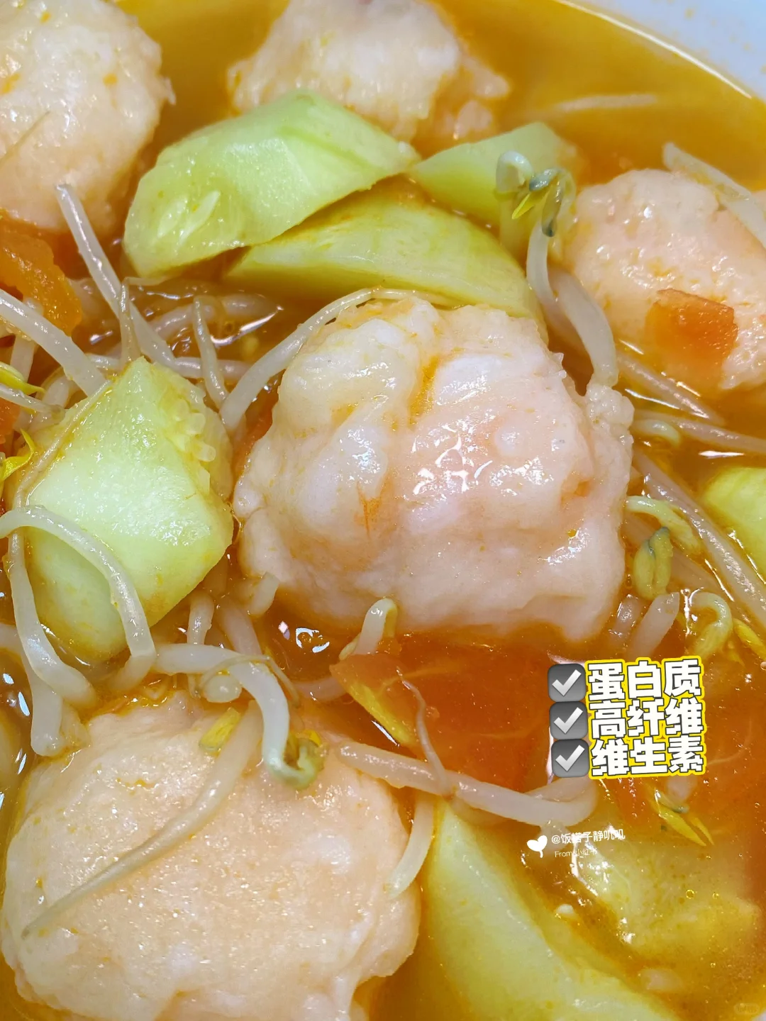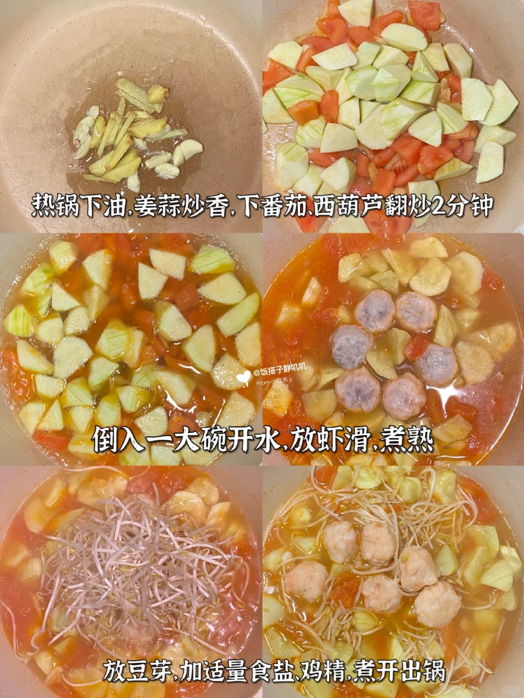 超级低卡又美味的番茄西葫芦豆芽虾滑汤