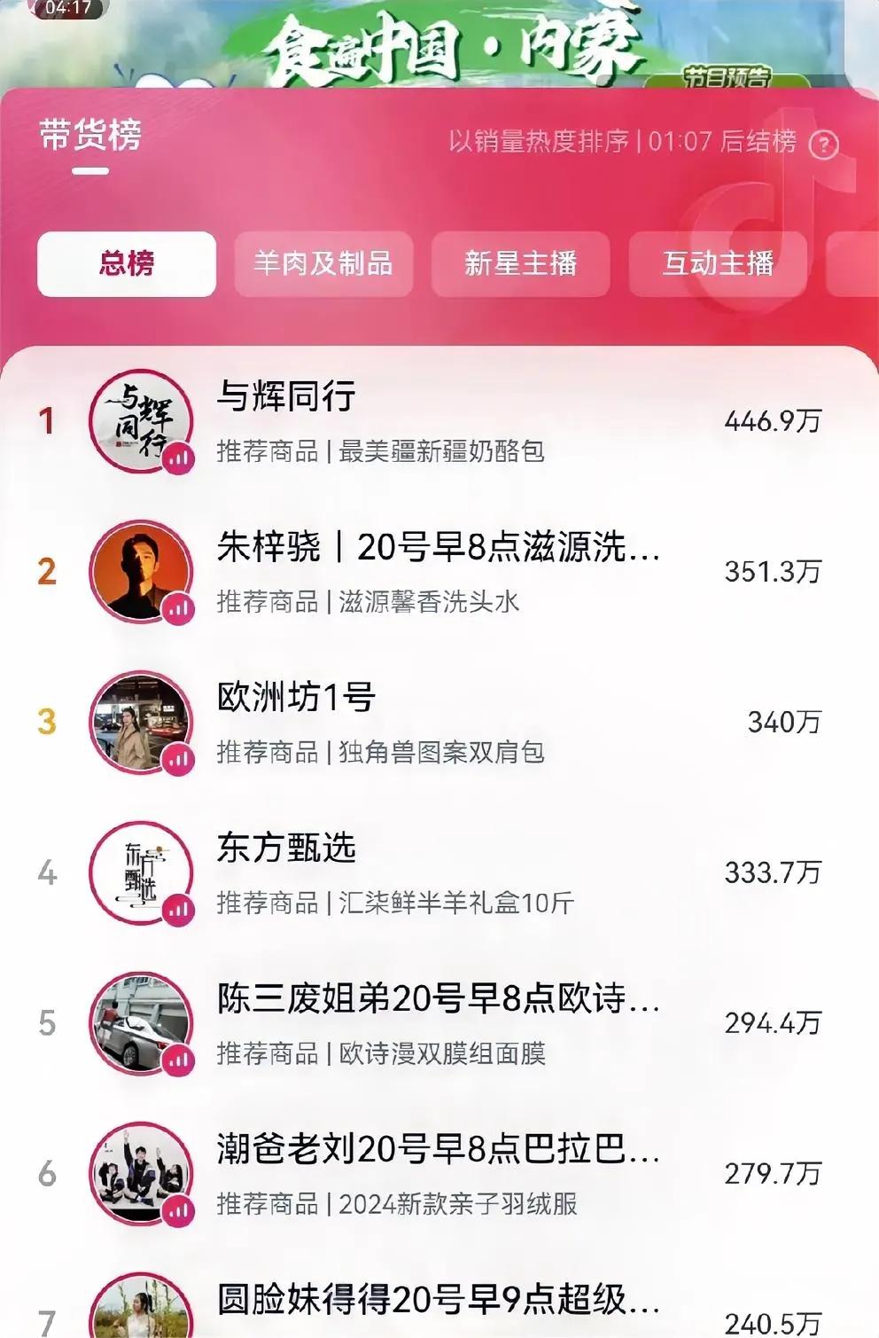七七可以啊。回到家乡下猛力了。人气9万加带货总榜第四,比与辉同行新疆行只差一点点,极大拉近距离,今天看来超过与辉同行也是有可能的!