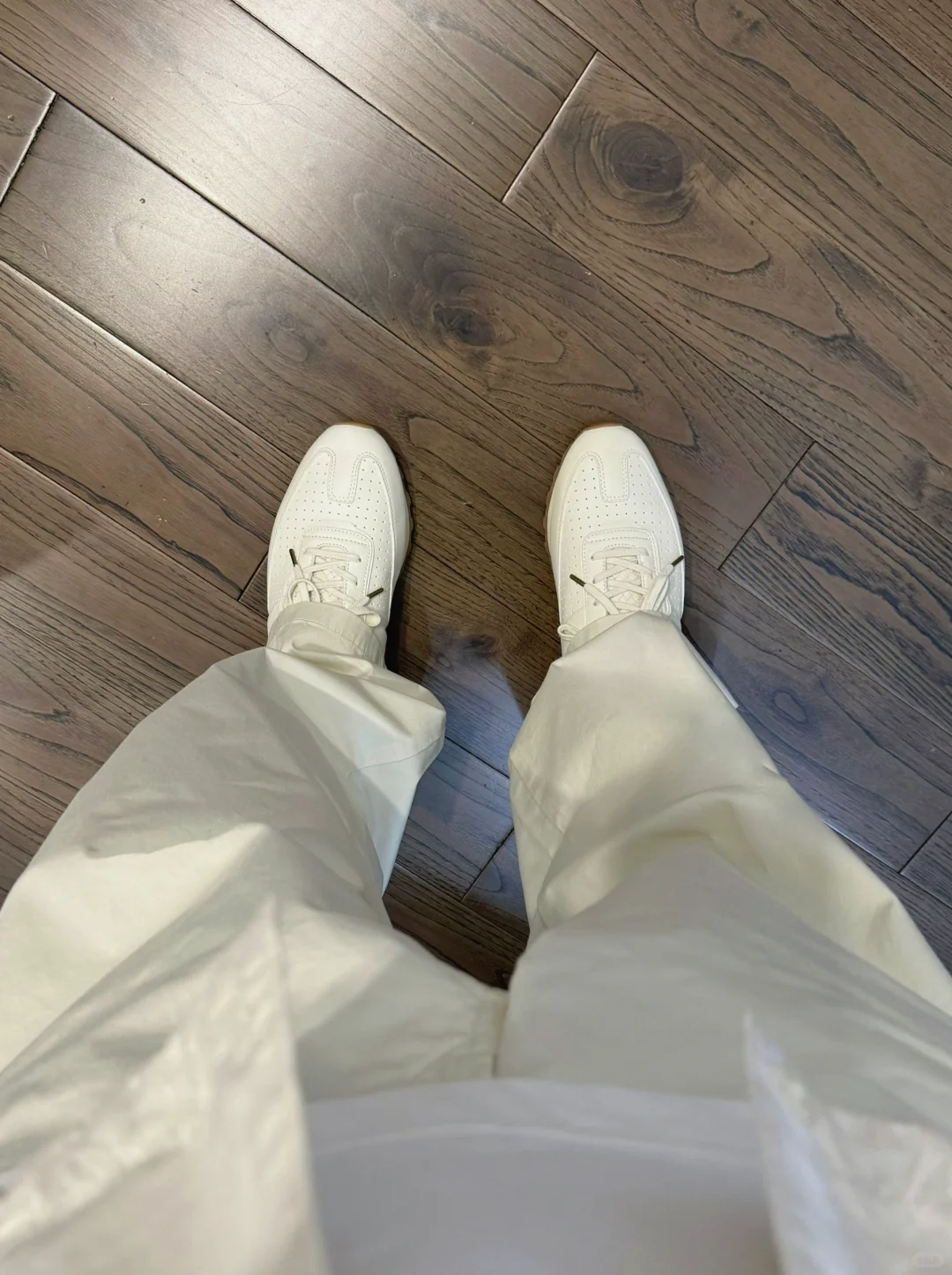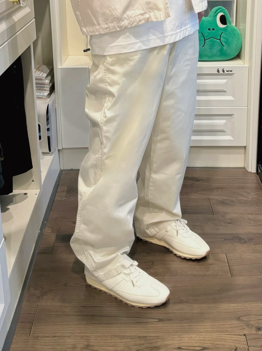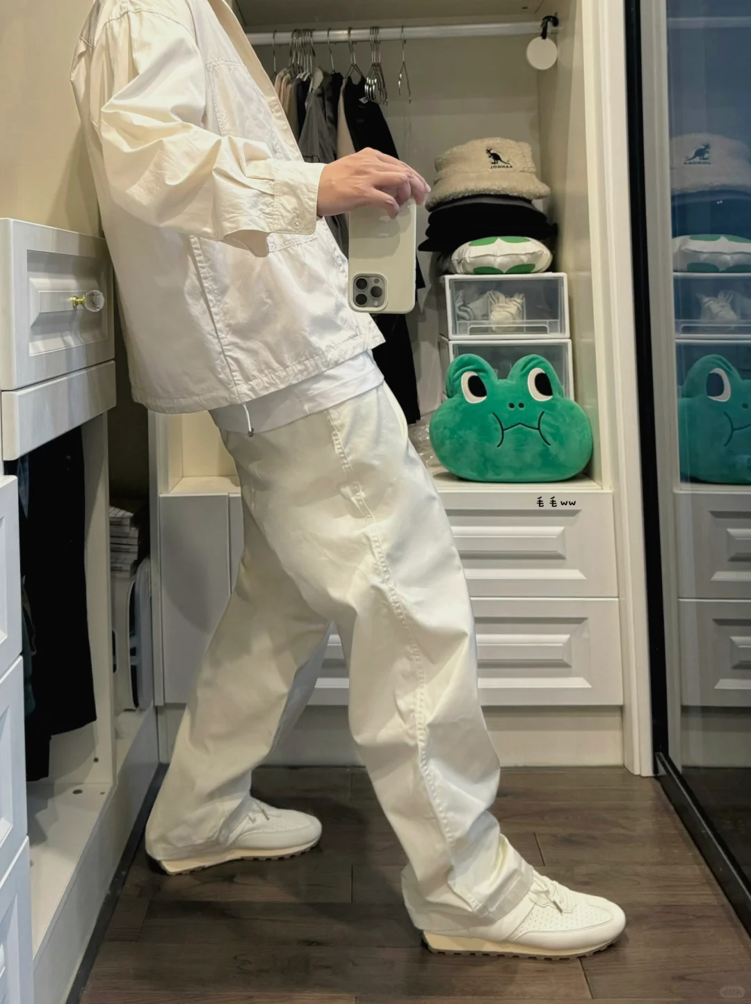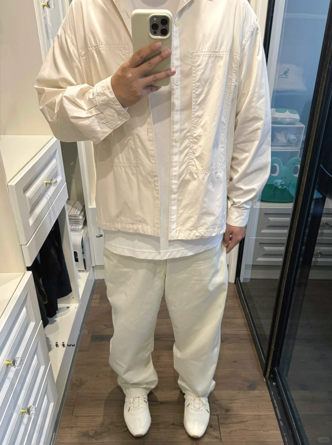 -喜欢穿浅色系,干干净净显得清爽,但又担心不耐脏,米白完美解决问题 . -5G入秋,简洁的衬衫叠穿,宽松廓形的打褶长裤,再来一双复古慢跑鞋 . —————— . ✏️本人178cm75kg 球鞋尺码265mm(正常EU42) . 💭以上均为我个人观点,不喜勿喷,欢迎讨论。
