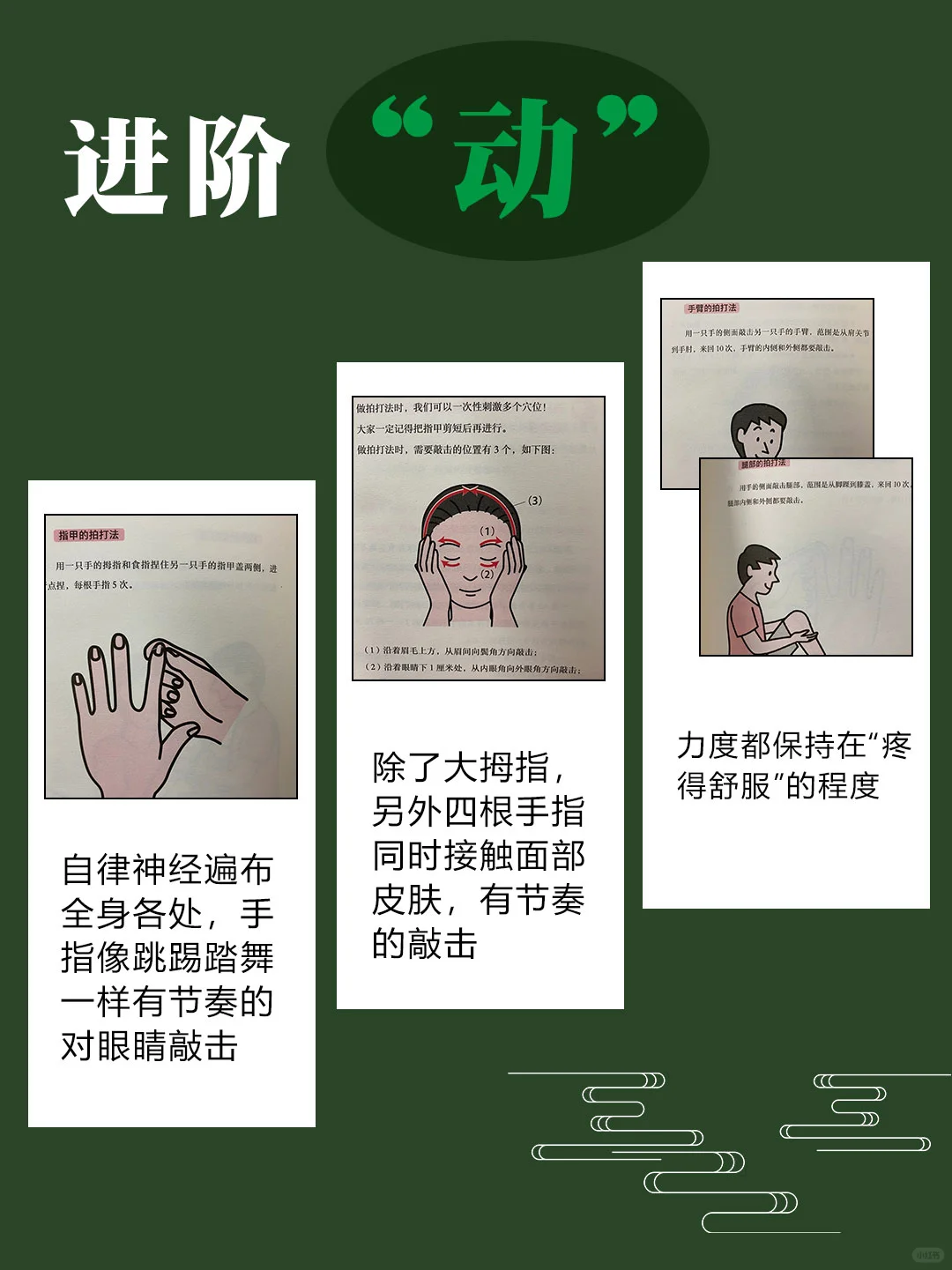 这个不用动脑子,会拍就行,拍打的过程中就会准确均匀的刺激到眼周和身体链接的一些穴位上