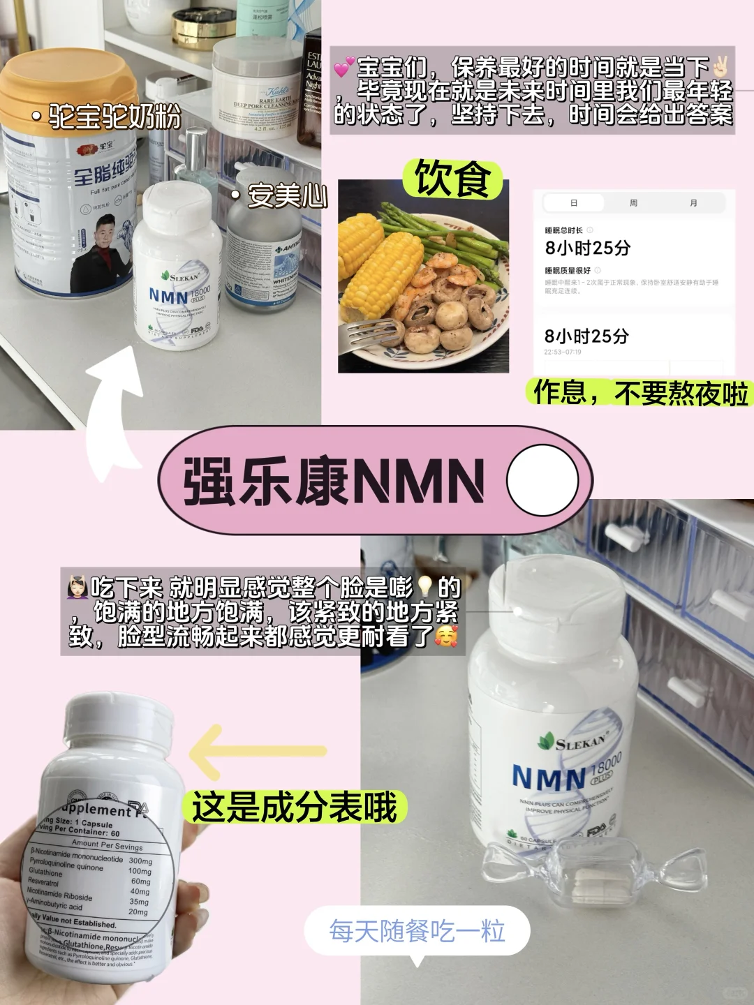 内调比护肤更重要,护肤是基础,内调才是巩固皮肤状态的精髓!✅ 强乐康NMN 是我当时对比了纯度和成分选出来的,🔍每粒300mg的NMN含量,纯度还有99.9%💥,搭配PQQ、谷胱甘肽、白藜芦醇这些养肤成分。