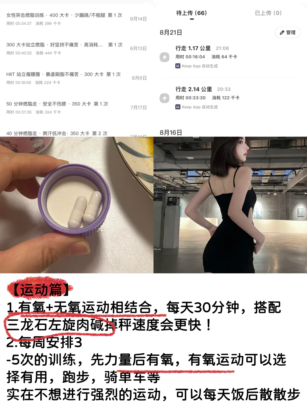 1️⃣有氧+无氧运动相结合,每天30分钟,搭配三龙石左旋肉碱掉秤速度会更快!