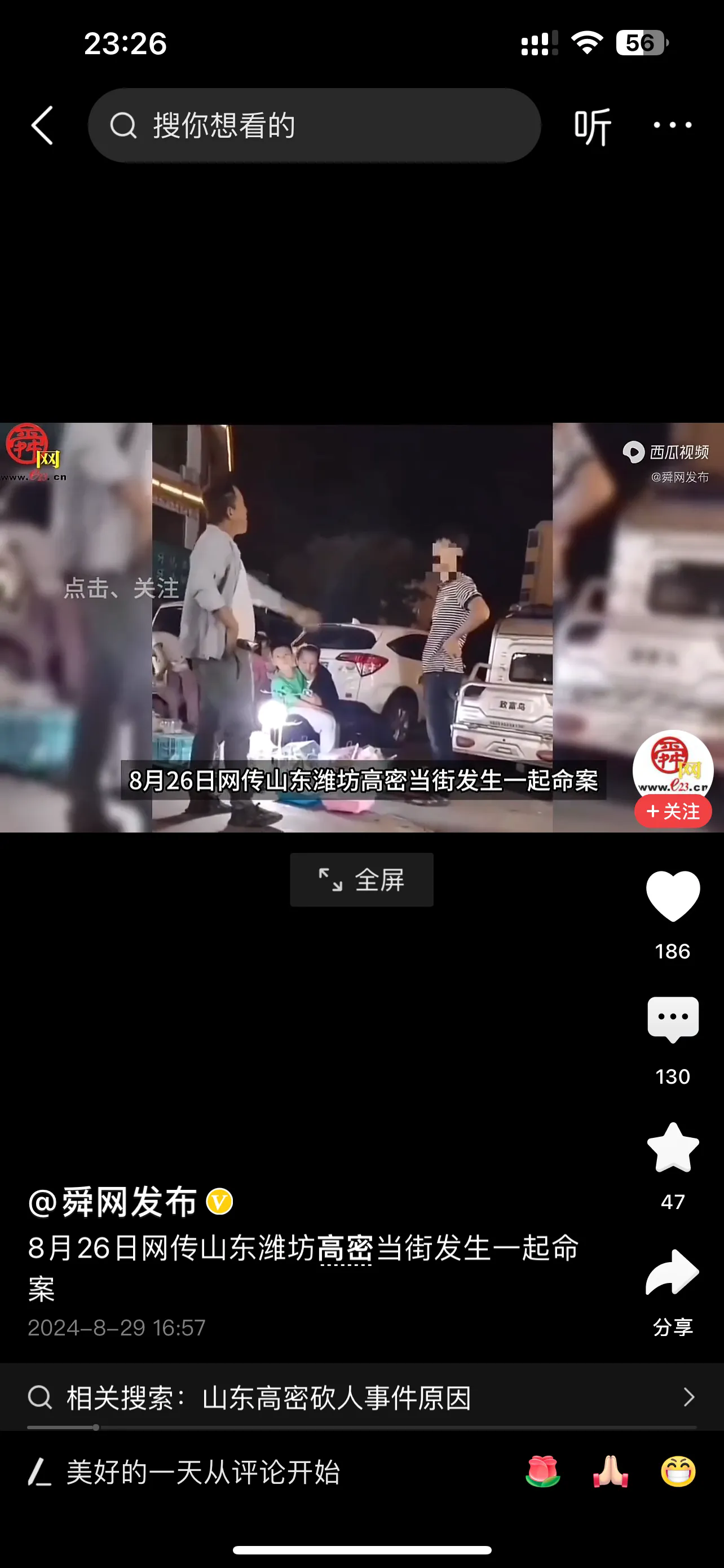 坐在家里喝酒,关注到了高密发生了一起命案,看到相关的通报两个男子都是36岁,一个