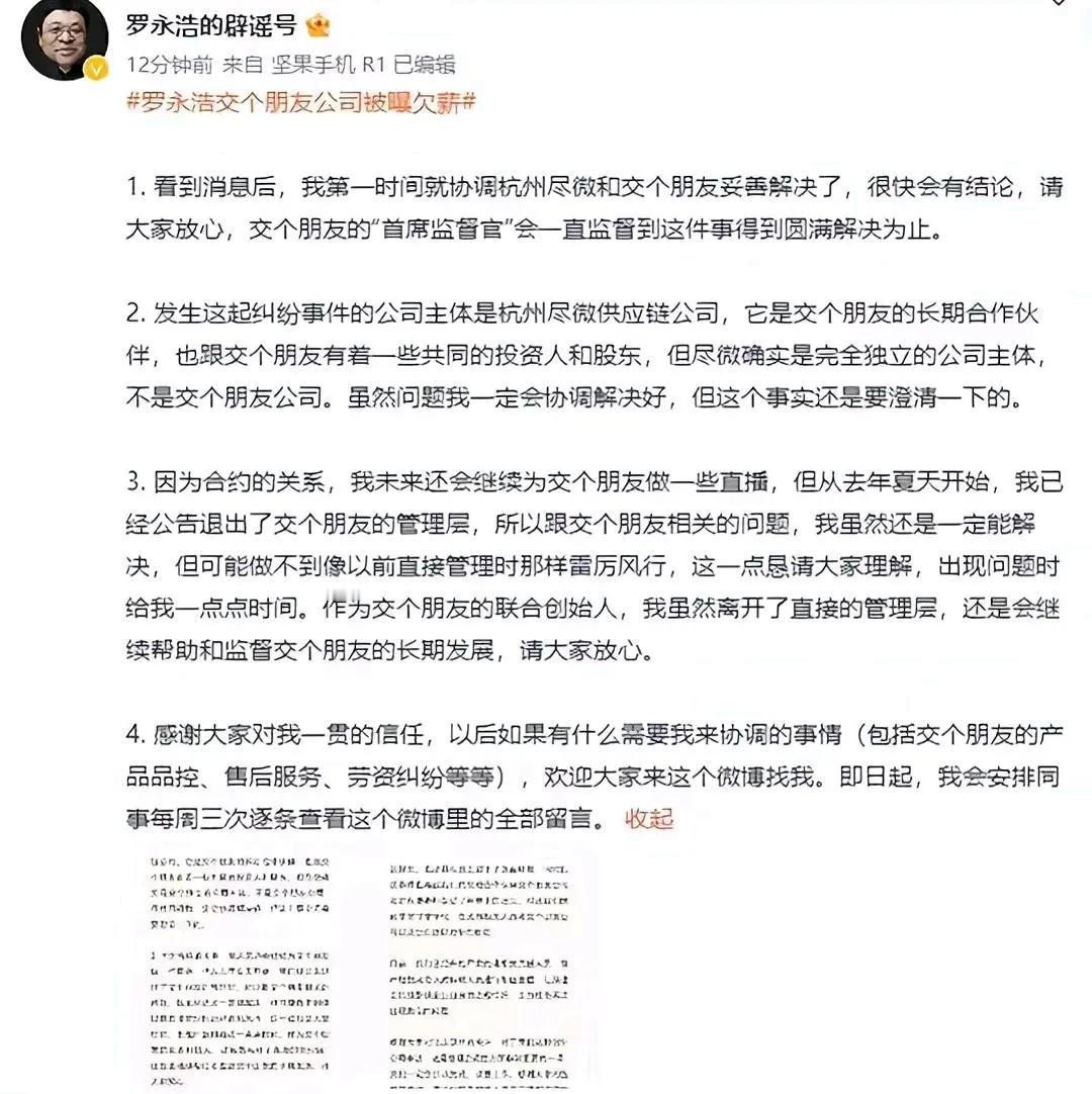 不欠别人一分钱,并能补偿员工N+1.捐款捐物的老俞是铁公鸡,欠人家十几亿,亏掉投资人几十亿的罗永浩变成“真还传“超级英雄?这是普世价值变了,还是笔者老了跟不上时代发展了?难道是谁大声谁有理?#罗永浩谈偿债# #罗永浩称已还8# #老罗钮钴禄#
