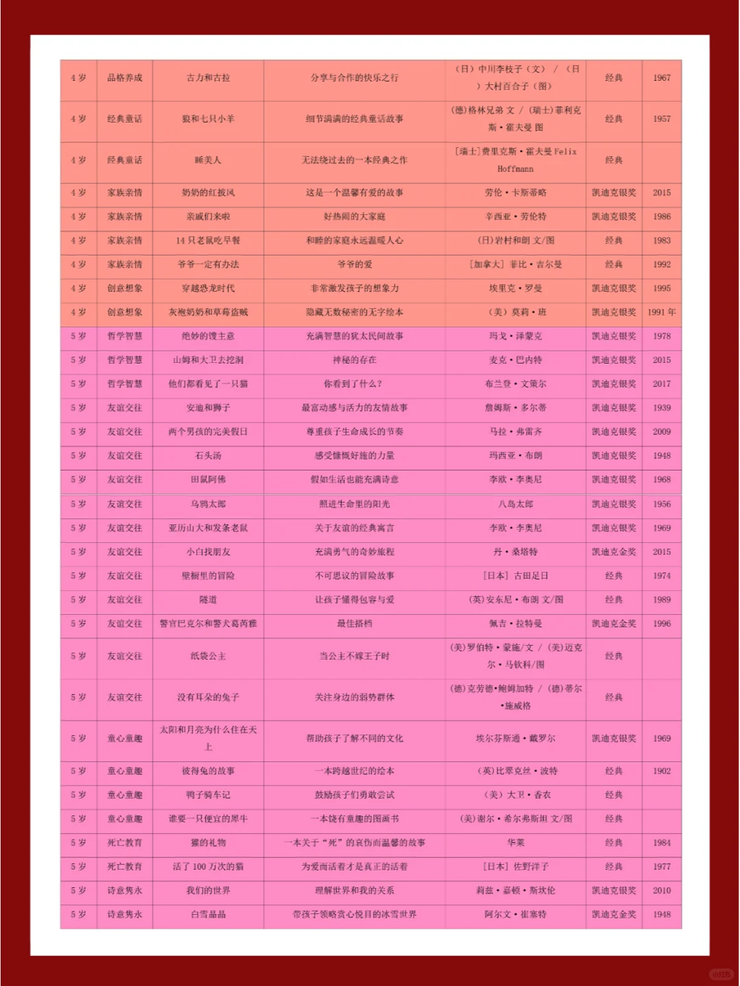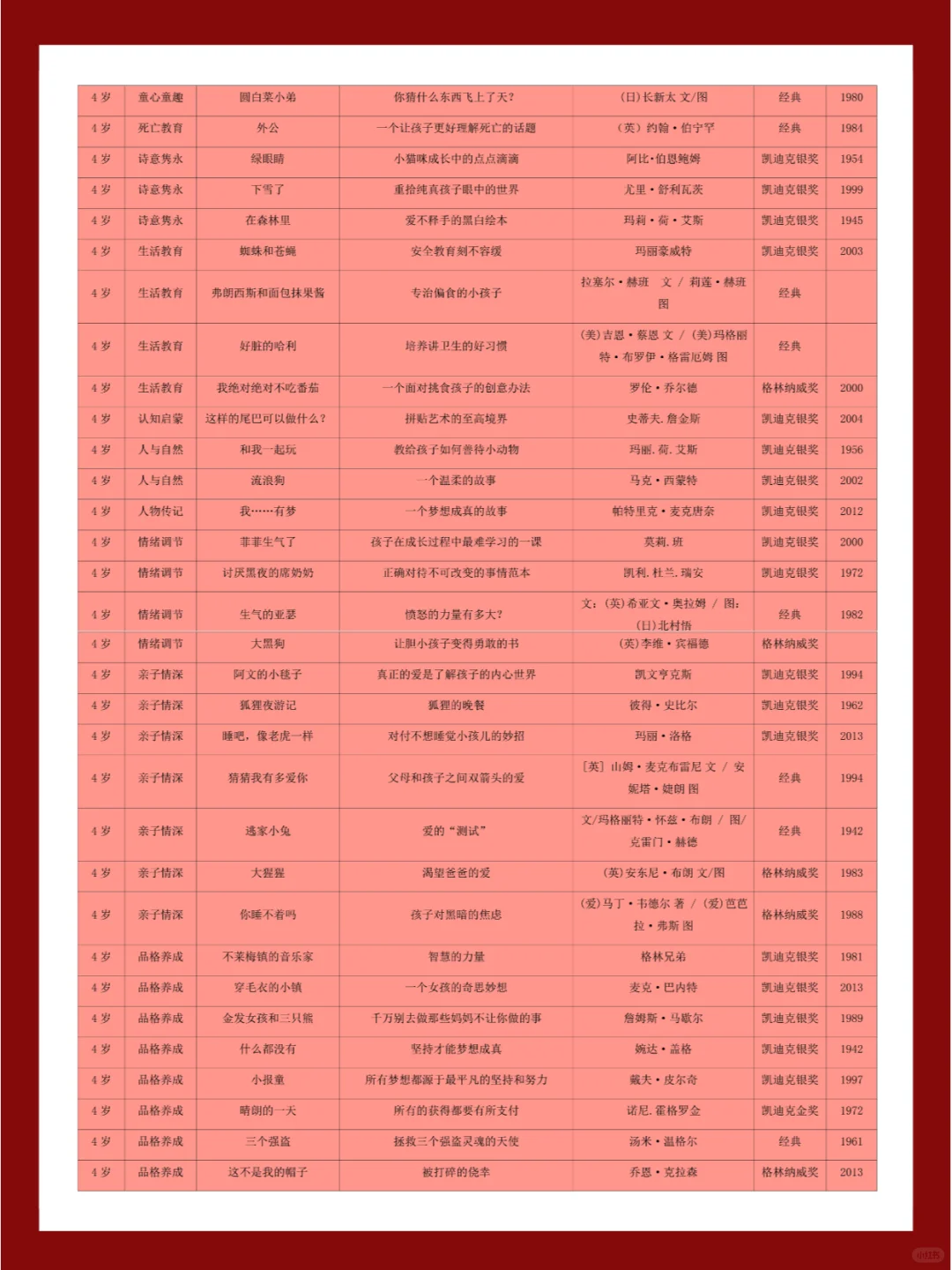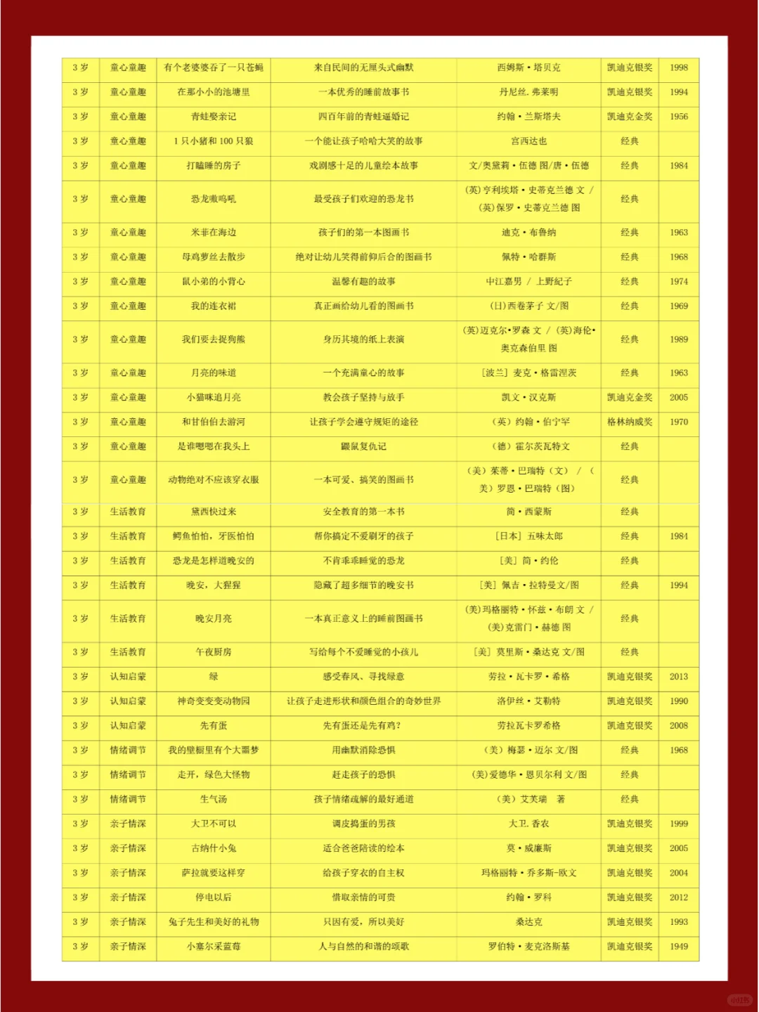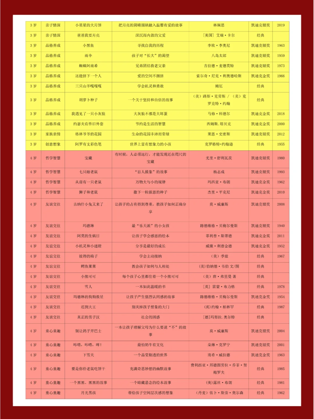 凯迪克金奖(60本)+凯迪克银奖(105本)+格林纳威奖(10本)+经典图画书(79本)