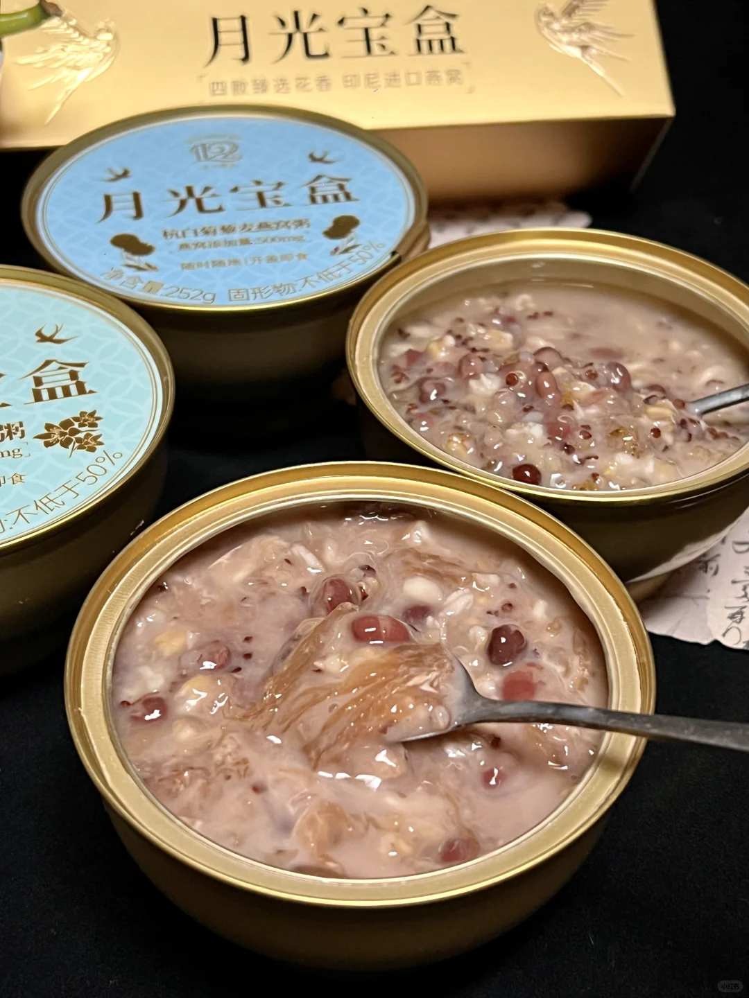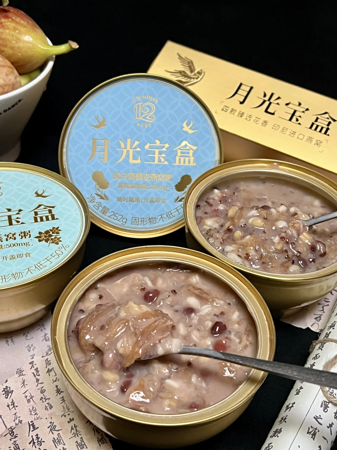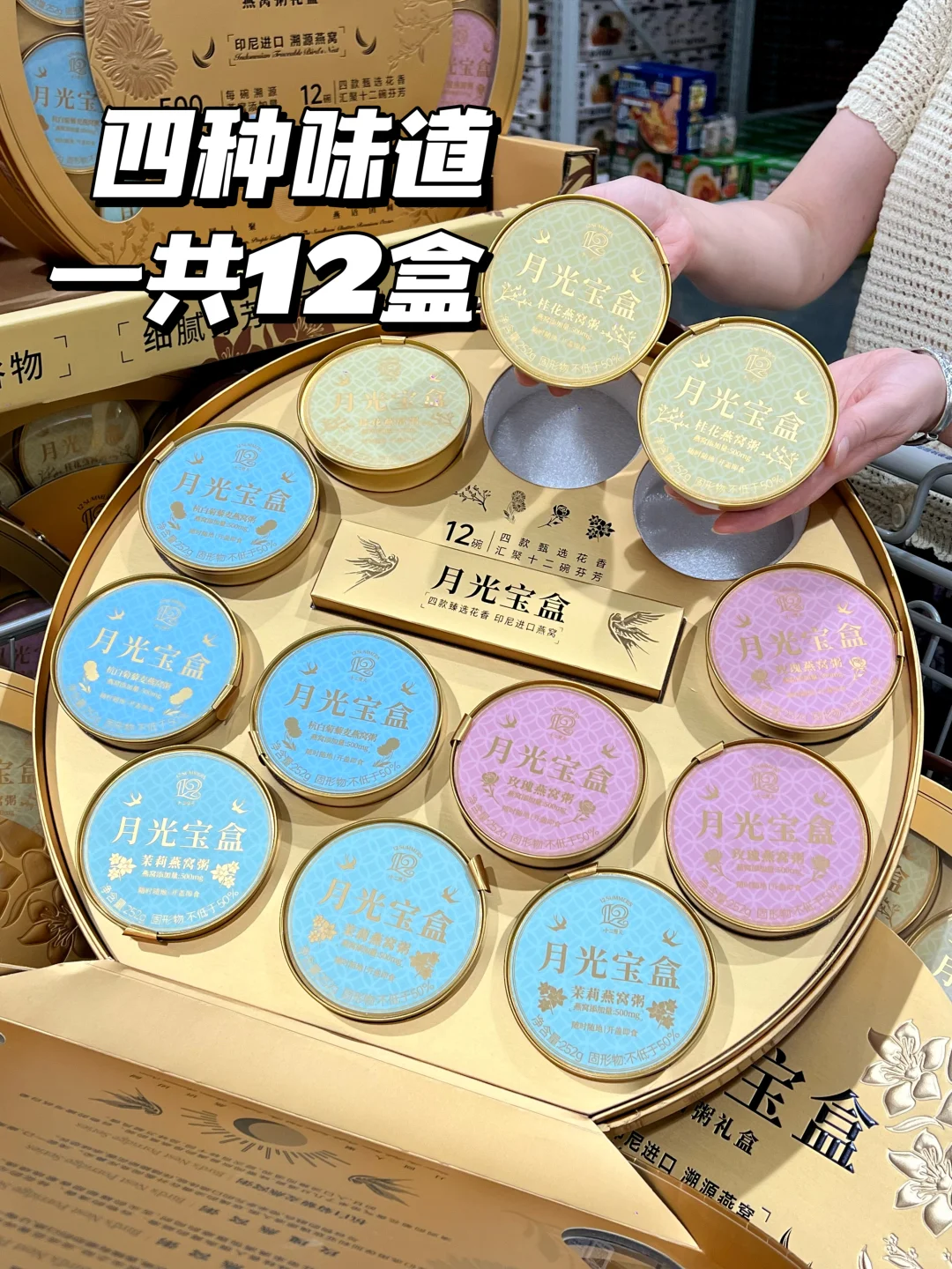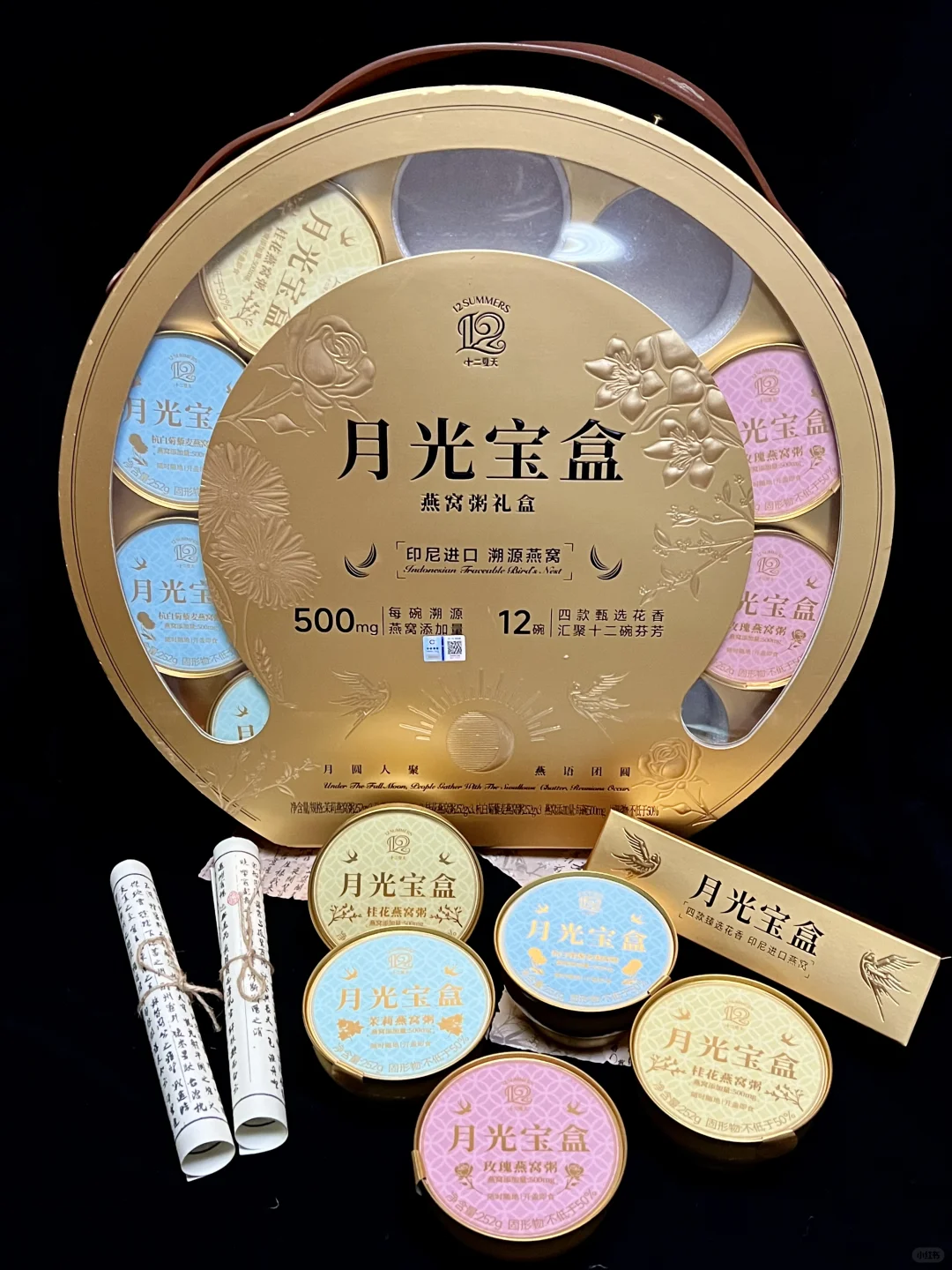 你就说,这么大一盒看起来够不够隆重?! 月光宝盒的燕窝粥,包装实在是有派头 中秋送礼,拎这么一盒,看起来诚意十足! 内里一共12盒燕窝粥,共4种味道 🌙玫瑰燕窝粥——保加利亚玫瑰 🌙杭白菊藜麦燕窝粥——杭白菊 🌙桂花燕窝粥——蒲城桂花 🌙茉莉燕窝粥——横县茉莉 每一碗用料都很扎实,很用心 开盖就能看到满满当当的燕窝 燕窝丝➕全谷物搭配,软糯香甜 冷藏后更适合夏天,冰冰凉凉很顺滑 中秋送礼选这个,长辈一定会夸你!!