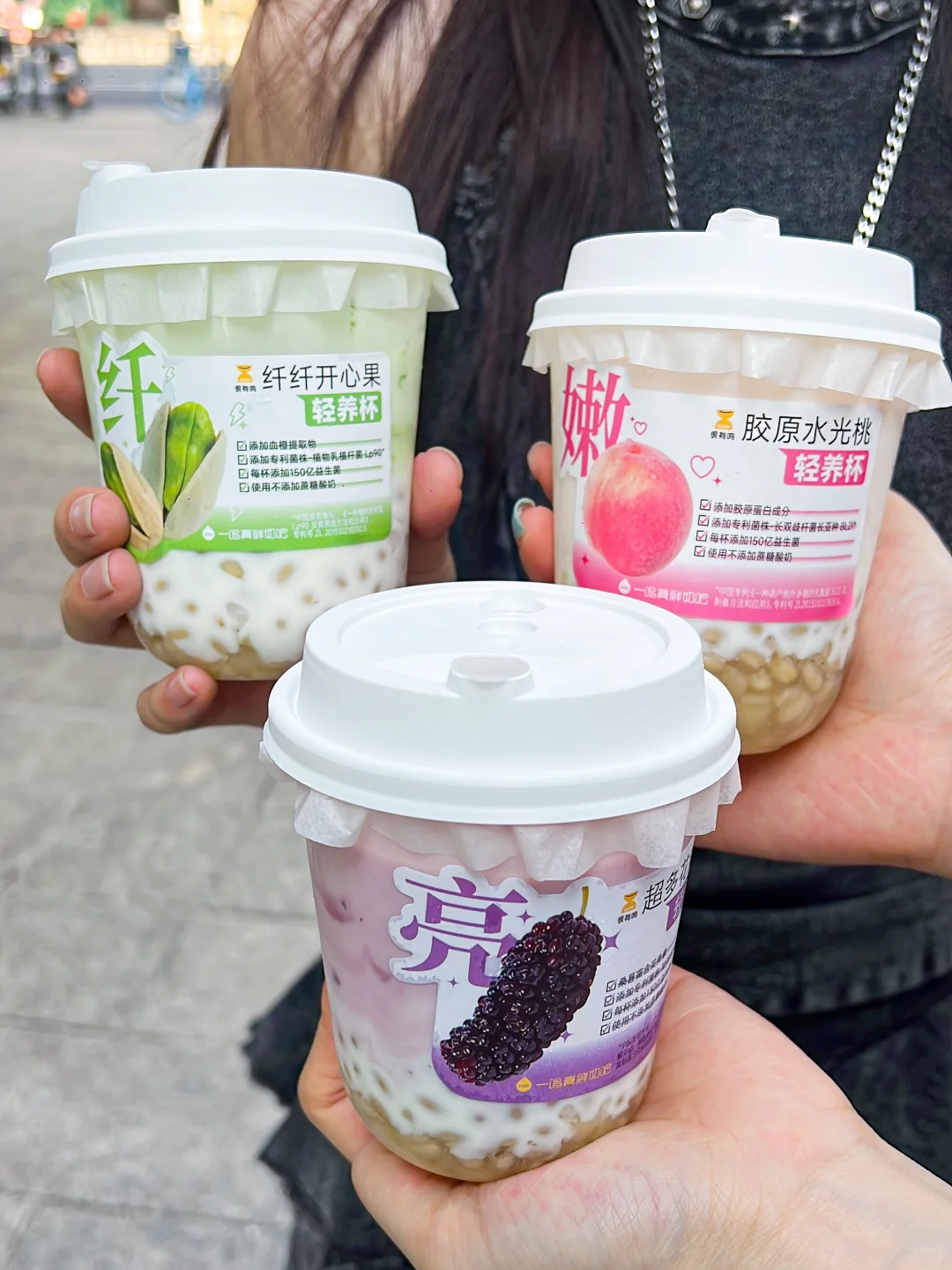 一鸣新出的轻养杯,实在太好看了! 酸奶界的平替实力选手! 多巴胺配色,喝起来心情都变好了~ 一杯里面配料满满,饱腹感很足 🍑胶原水光桃轻养杯 12r 蜜桃果酱+无蔗糖酸奶+燕麦爆珠+马蹄果粒 蜜桃味很重,果味浓郁,酸酸甜甜超好喝! 还添加了胶原蛋白成分,好适合我这种熬夜党 🫐超多花青素轻养杯 12r 桑葚果酱+无蔗糖酸奶+燕麦爆爆珠+马蹄果粒 满杯的花青素,对女孩子真的很友好 下午茶时间喝一杯,注入满满活力! 🫒纤纤开心果轻养杯 13r 开心果酱+无蔗糖酸奶+燕麦爆爆珠+马蹄果粒 真的好喜欢这种坚果香气!!健康的味道! 一鸣真的很会出一些低脂又好吃的东西 轻养杯系列都能直接当晚餐了!好贴心!! 最近的幸福感和安全感,都是一鸣给的!!
