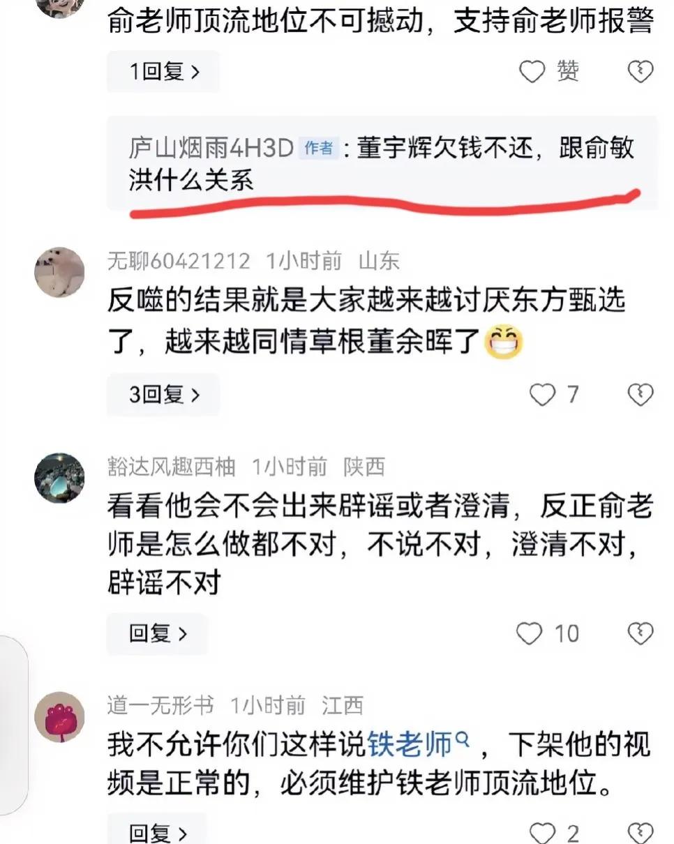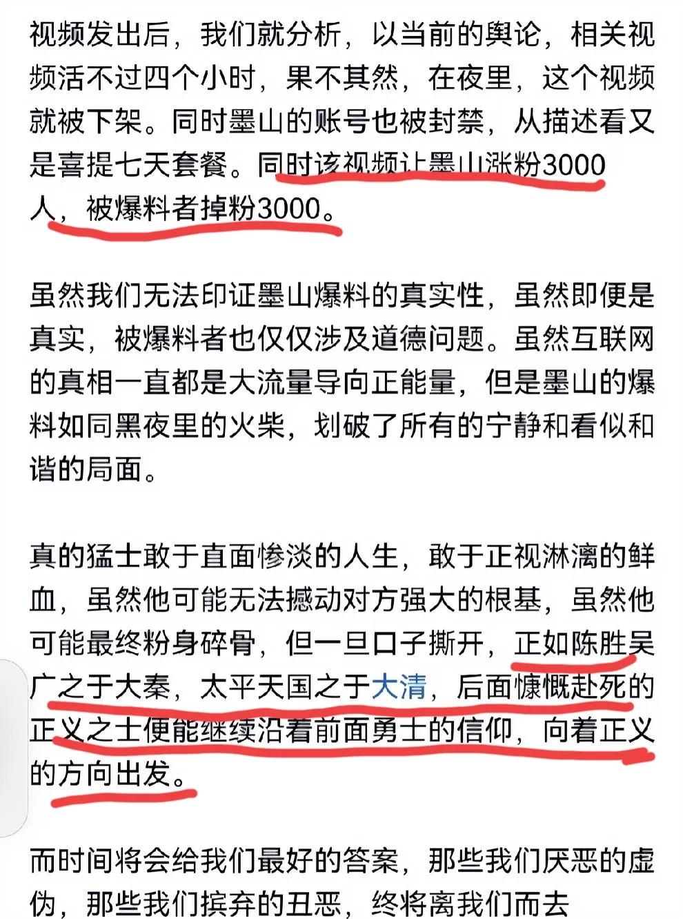 庐山烟雨为墨山大唱赞歌,说其燝料行为是黑夜里火枈,伟大意义如陈胜吴广之大秦,太平天国之大清,后面慷慨赴死正义之士可继续沿墨山勇士之信仰,向着正义方向出发。说的悲壮可歌可泣!而庐山自己是懦夫,发的头条用那个人带替顶流,评论区回网友却暴露说“董宇辉欠钱不还〞,是不是可以做为证据其造谣事实成立@董宇辉 叫法务当作证据收集!