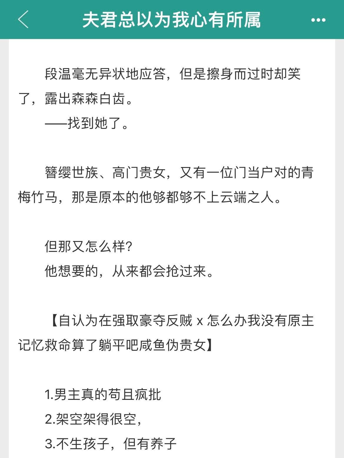 苟且疯批反贼vs算了躺平吧伪贵女!苟且疯批反贼vs算了躺平吧伪贵女! 书名:《夫君总以为我心有所属》 作者:岁既晏兮 标签:古言、宫廷侯爵、穿越文