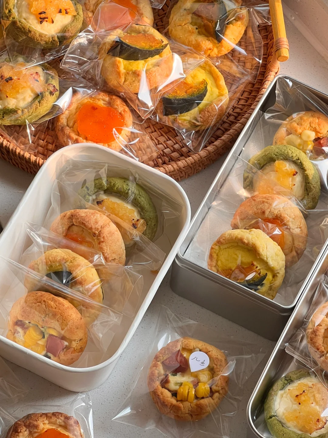 几鱼蛋糕综合课新品上架✨专项甜品之乳酪司康 咸口味的蛋黄肉松烤肠司康 浓郁的贝贝南瓜司康 应季的杏子司康(根据季节变换) 草莓树莓司康 椰香凤梨斑斓司康 现烤后和冷冻后的口感都不一样 超爱😊
