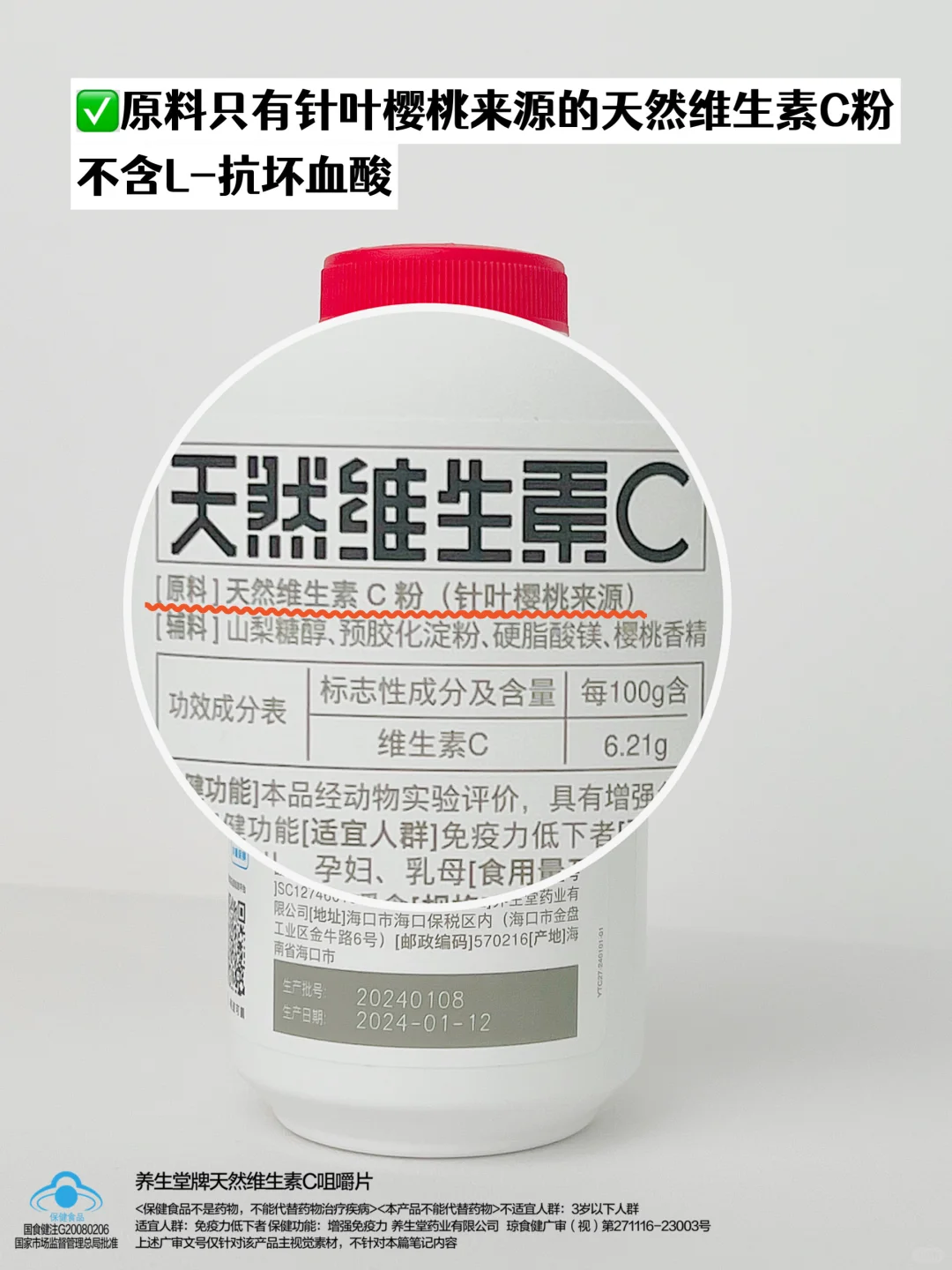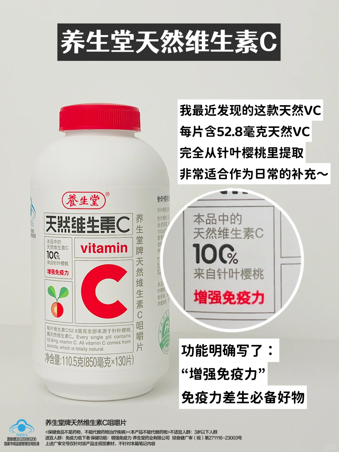 我最近吃的是养生堂天然维生素C,每一片是含52.8mg天然维C,他们就完全是天然来源的维生素C,没有添加防腐剂、人工色素什么的,各方面也都很符合我的要求,吃起来微酸,不是特别甜,吃的时候就感觉挺天然的。