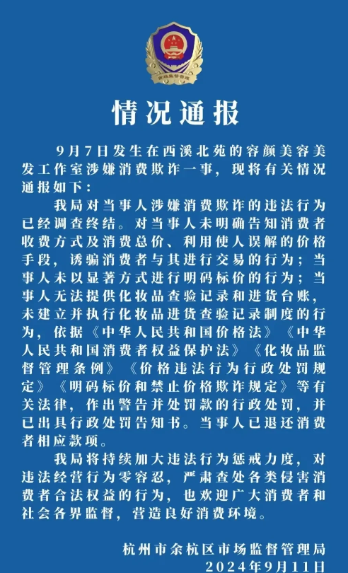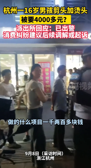 5月8日晚上,余杭区市管局发布最新通报:16岁少年剪头发,因为某些消费被索要4000块钱的事情,经过调查,核实了该问题 ,该理发店涉嫌存在消费欺诈问题,现已经立案调查,并且作出警告并处以罚款的行政处罚,16岁小伙消费了4000块钱,已完全退还。