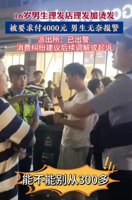 但是民警显然知道负责人的嘴脸,一直在帮我名16岁小伙说话,丝毫没有把负责人的话放在耳朵里,并且直接怼道:“你不用跟我讲这讲那的,剪个头发,烫个头发,一共300块钱,以后给我明码标价出来,不要就随你们一口300就变成了1000多,能不能给我个痛快话?”