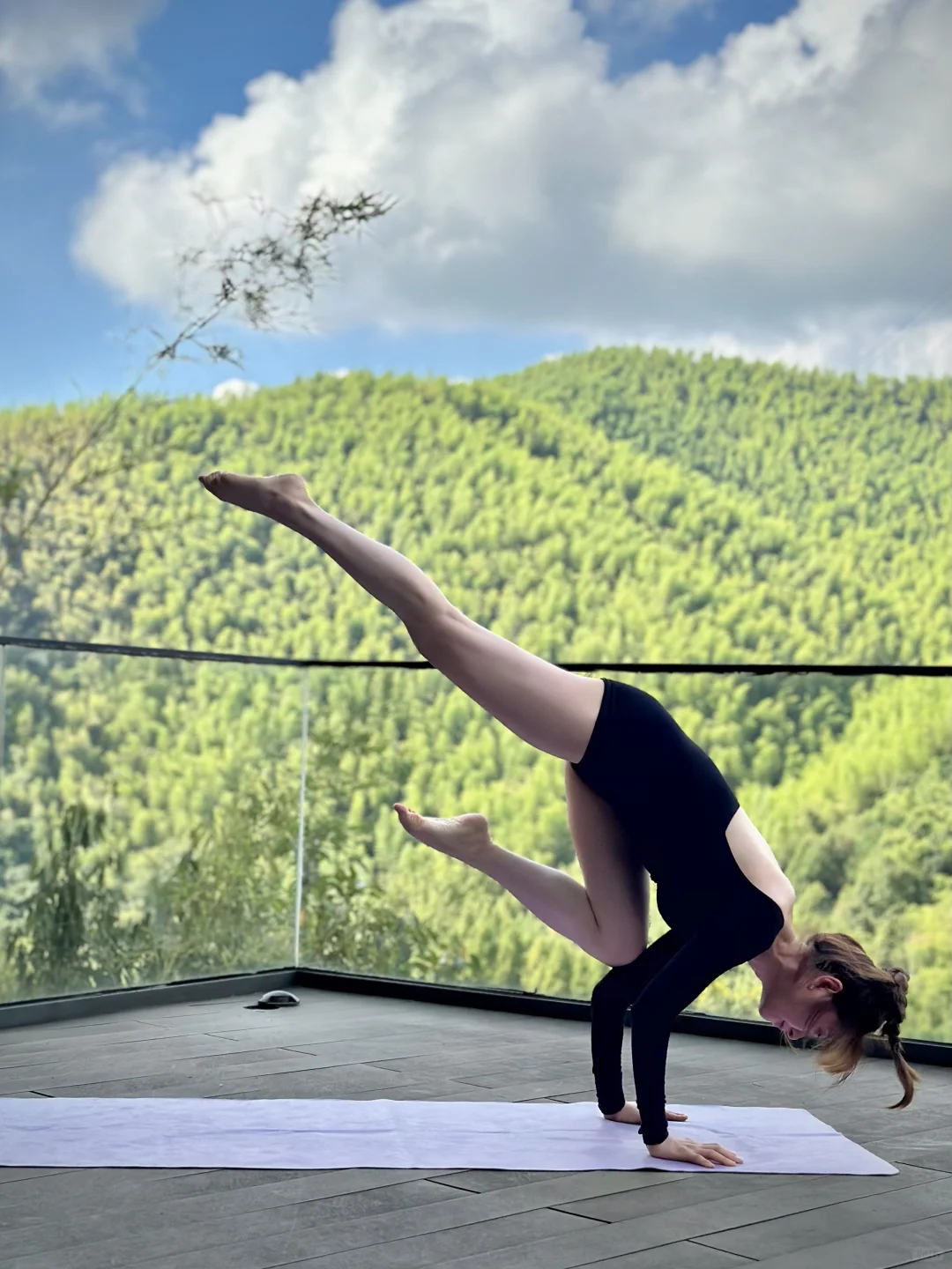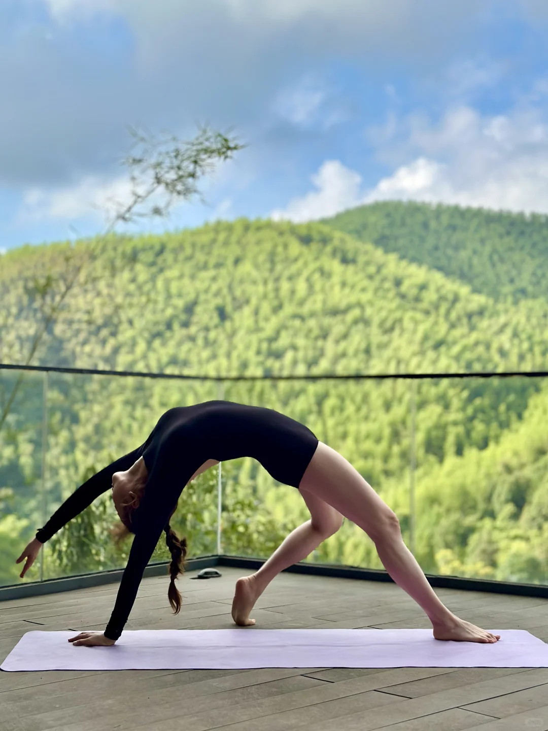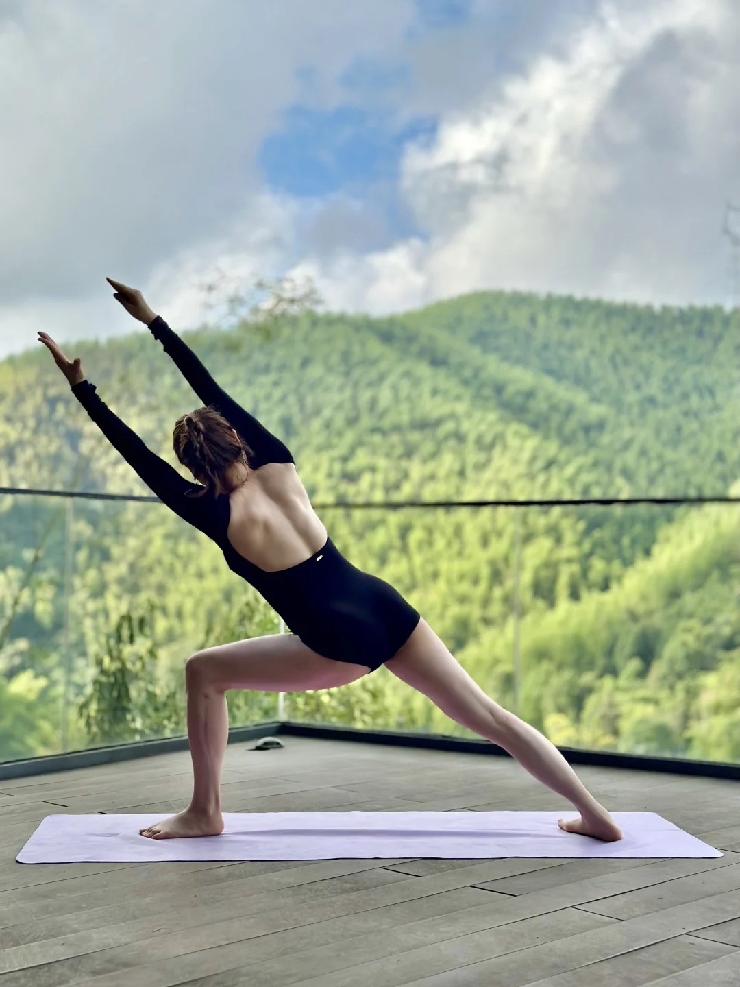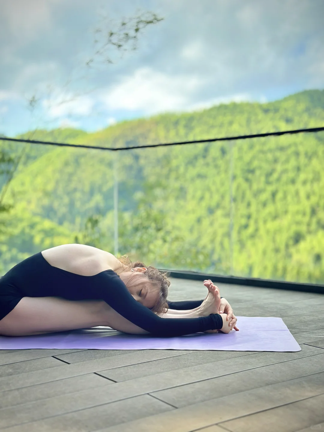 来到山里寻找一丝清凉,却风也慵懒,云也徘徊。想要自我练习,就只能在清晨或傍晚的时刻,才将垫子铺展开来。