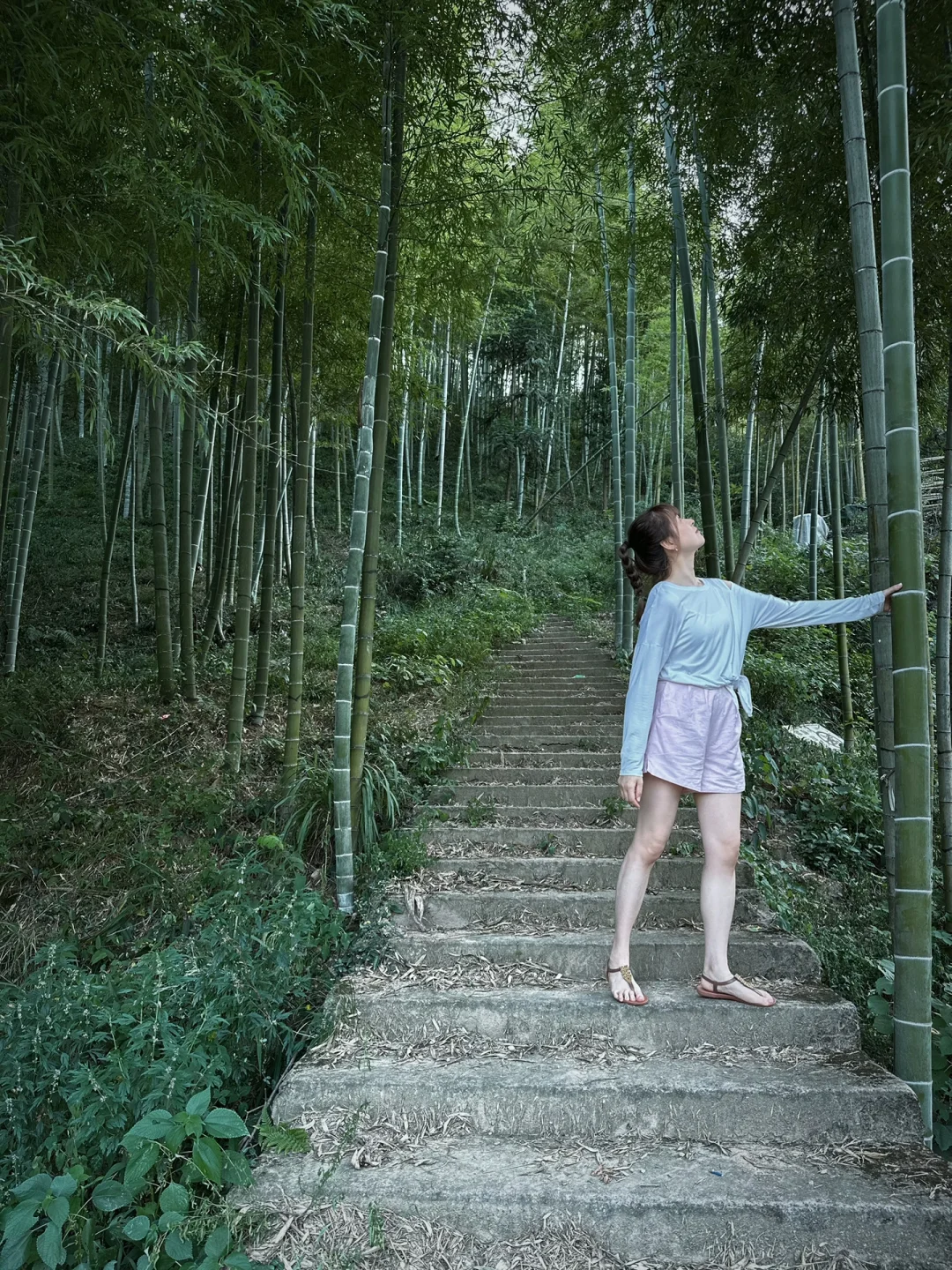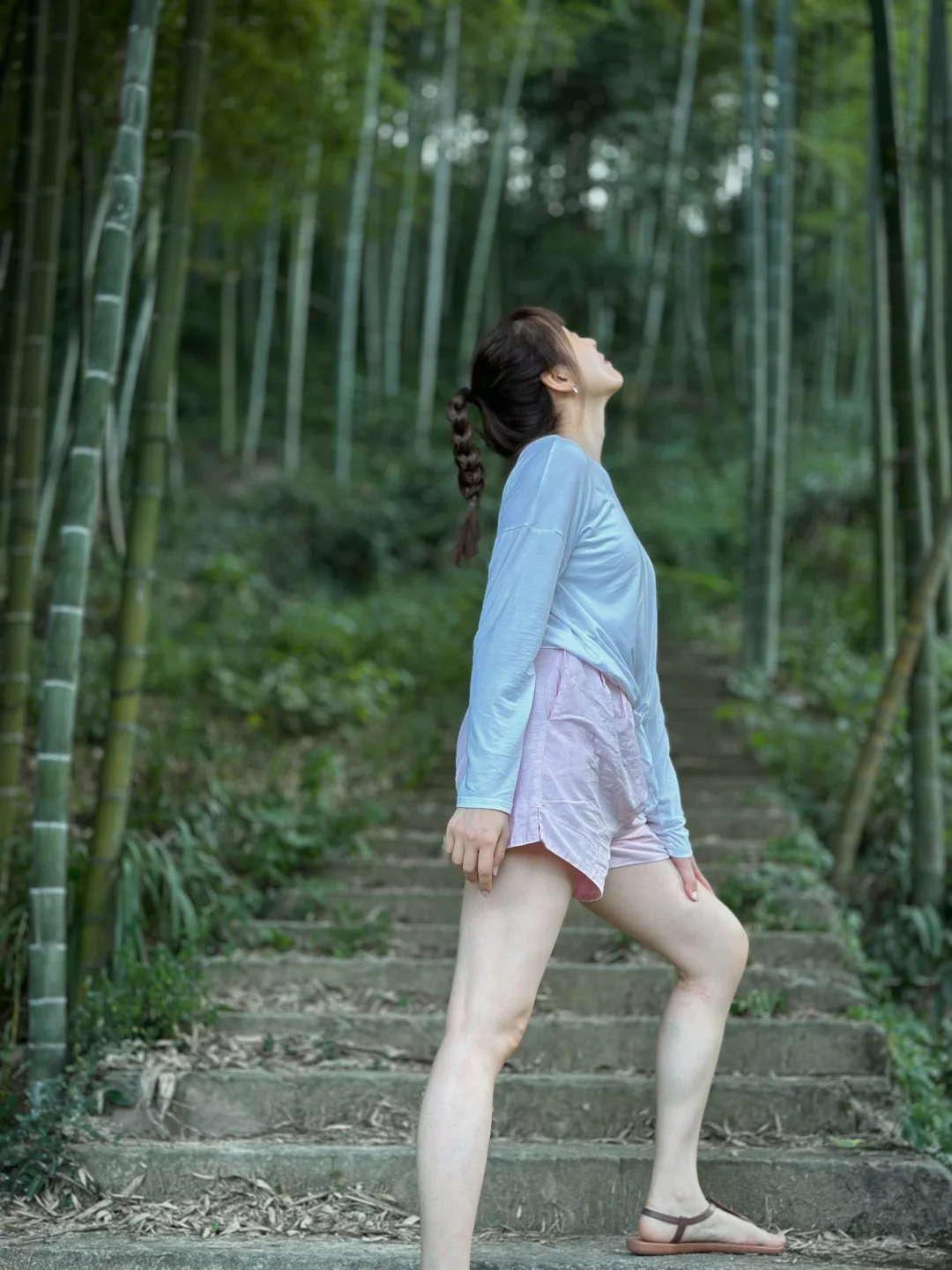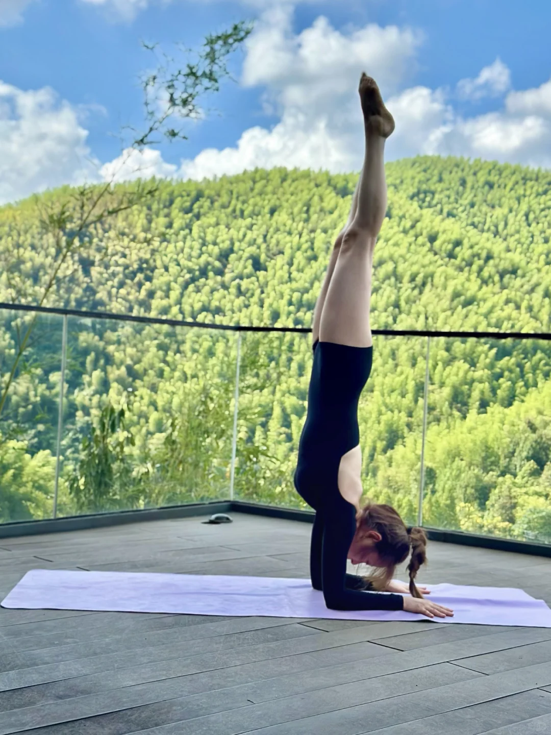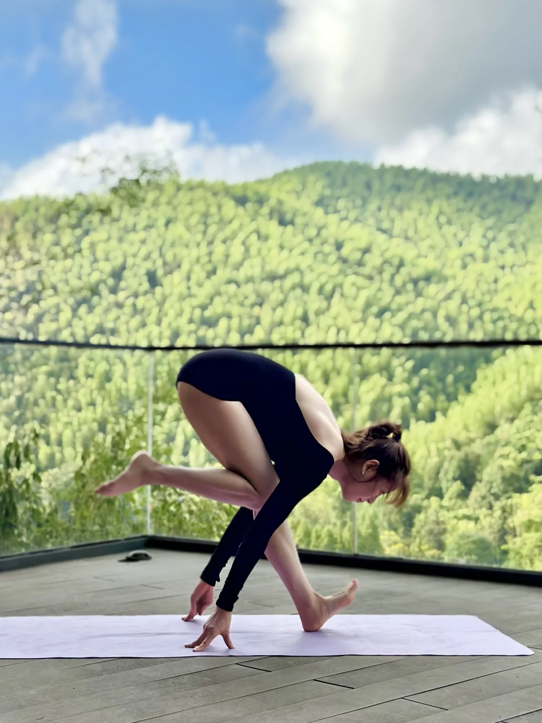 来到山里寻找一丝清凉,却风也慵懒,云也徘徊。想要自我练习,就只能在清晨或傍晚的时刻,才将垫子铺展开来。