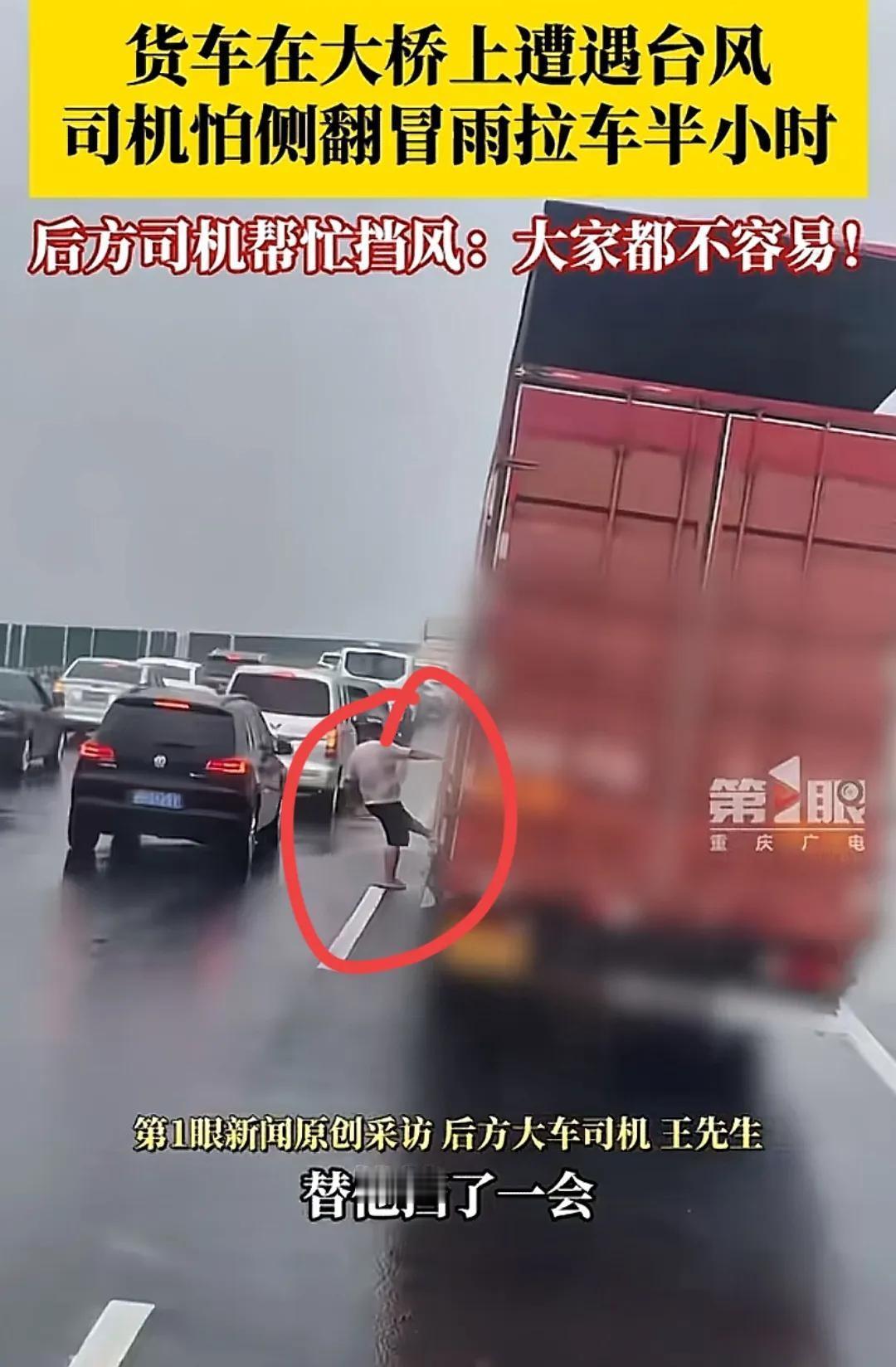 你绝对想不到!狂风暴雨中,司机竟用身体扶住倾斜货车,半小时的惊魂时刻!面对台风贝