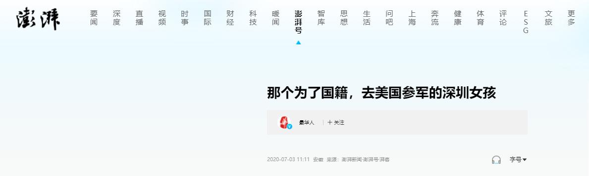 一位曾叛国并发文挑衅中国的女孩,5年前吹嘘在美国当兵的快意生活,然而,时过境迁,她在美国的日子并不如意,更让她始料未及的是,当她想重返祖国时,被禁止入境。 信源:澎湃新闻2020-07-03——那个为了国籍,去美国参军的深圳女孩 在这个全球化的时代许多年轻人怀揣梦想远赴他乡,追求所谓的"更好生活",但有时候这种追求可能会让人迷失方向,甚至做出令人遗憾的选择。 小李出生在一个富裕的家庭从小就享受着父母的宠爱,这种无忧无虑的生活也带来了一些负面影响,上大学后小李沉迷于享乐学习成绩每况愈下,为了让女儿"镀金"父母决定送她到美国留学。 刚到美国时小李对这个陌生的环境感到不适应,但很快她就被美国繁华的表象所吸引,高楼大厦、丰富的娱乐活动,让她产生了强烈的留美愿望,为了获得绿卡她不惜采取了一些极端措施,包括与一名年长20岁的美国男子结婚。 这段婚姻并没有给小李带来幸福,相反她经历了一段痛苦的时光,离婚后小李并未放弃留美的梦想,她听说参军可以获得绿卡,于是开始为加入美军做准备。 在社交媒体上小李开始发表一些令人不适的言论,吹捧美国军队甚至贬低自己的祖国,这种行为引起了许多人的不满和批评,小李似乎并不在意她只关心如何实现自己的目标。 终于小李如愿以偿地加入了美军,可现实并非她想象的那样美好,在军队里她遭遇了种族歧视和不友好对待,尽管如此为了不被排挤,她仍然对外宣称美军生活很好。 获得绿卡后小李渐渐意识到,美国并非她想象中的天堂,作为一个普通人她无法享受到优秀人才的待遇,她开始怀念国内的生活,但令她震惊的是她发现自己已经被祖国禁止入境。 小李的故事引发了广泛讨论有人同情她的遭遇,认为她只是一个被美国梦蛊惑的年轻人,也有人批评她的行为,认为她背叛了自己的祖国和文化。 事实上类似小李这样的案例并不少见,据统计每年都有一定数量的华人因各种原因选择加入外国军队,这种行为不仅可能导致他们失去中国国籍还可能面临法律风险。 其实年轻人在做出重大决定时,应该慎重考虑出国留学固然可以开阔视野,但不应该忘记自己的根盲目崇拜外国文化,贬低自己的祖国,往往会带来负面后果。 另一方面这个故事也反映出一些深层次的社会问题,比如为什么有些年轻人会对国外生活抱有不切实际的幻想?我们的教育体系是否存在某些不足,导致一些年轻人缺乏正确的价值观和国家认同感? 我们应该加强爱国主义教育,培养年轻人的文化自信,同时也要客观看待国外的优点,学习借鉴,而不是盲目崇拜或全盘否定。 小李的故事给我们的启示是,追求梦想固然重要,但更重要的是保持清醒的头脑不忘本源,无论身在何处都应该珍惜自己的文化根源,理性看待自己和他人,只有这样我们才能在这个复杂的世界中找到真正属于自己的位置。 小李的经历虽然令人唏嘘但也给我们上了一堂生动的人生课,它提醒我们在追求个人梦想的同时,不要忘记自己的根和责任,世界很大机会很多,但最重要的是保持清醒的头脑和正确的价值观。 对于年轻人来说拓展国际视野很重要,但更重要的是培养对祖国的认同感和文化自信,只有这样我们才能在这个全球化的时代中,找到真正的自我实现真正的价值。