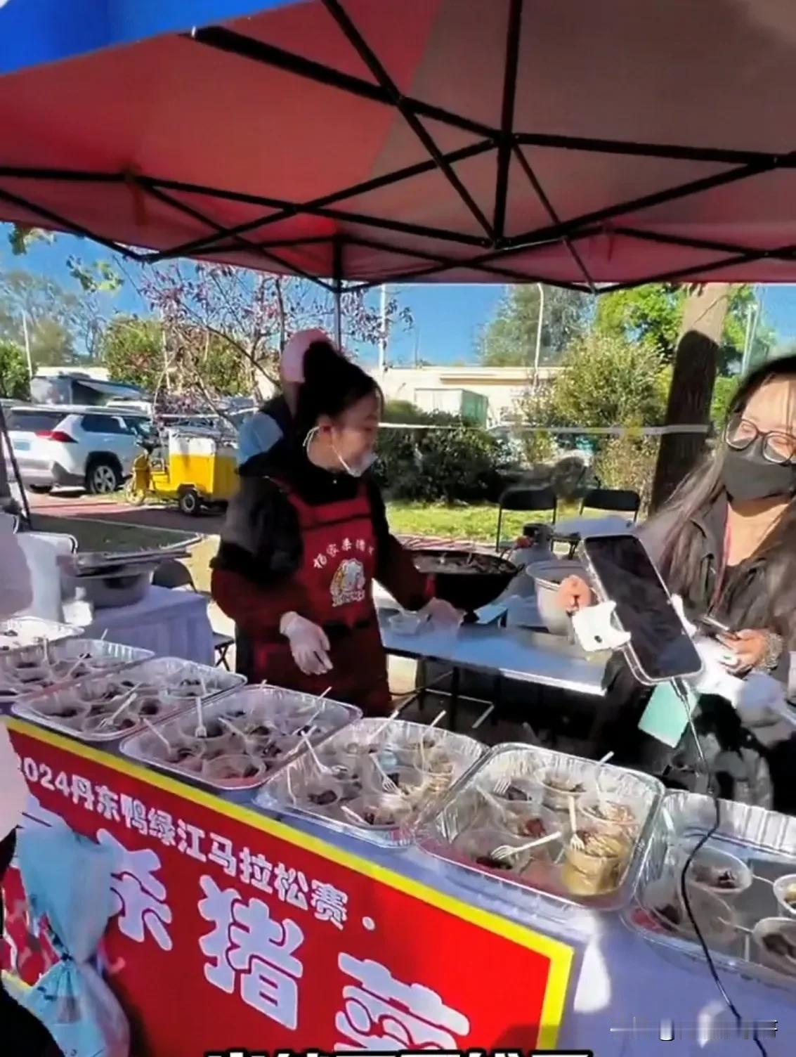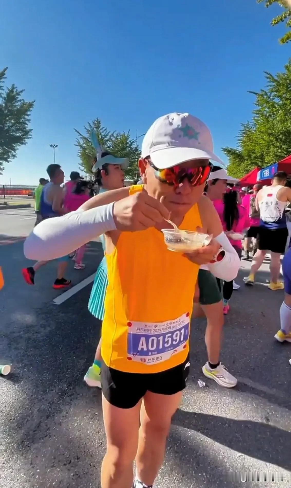 哥们!你是来比赛还是来吃“流水席”? 2024丹东鸭绿江马拉松比赛于9月22日开跑,美丽的丹东鸭绿江边迎来了1.5万名马拉松选手,分别参加全程,半程和迷你三个项目的角逐。 要不说俺们丹东人好客呢,路边除了有身着朝鲜族服饰的美女助威团,还有丰富无比的丹东特色美食供选手们品尝补充体力。 该说不说,主办方真做足了功课,也是下了血本。长长的补给站就像自助餐厅,不但有各种水果小吃,还有包子饺子和炸鸡,除此之外,丹东非遗美食叉子和焖子也全部亮相登场,更过分的是,为马拉松选手准备了东北美食杀猪菜!就看选手们吃的不亦乐乎,好像忘了是来丹东参加比赛的,更像是来吃“流水席”,选手们边吃边喊“感谢丹东”! 最后祝选手们取得好成绩,吃好喝好啊[捂脸]