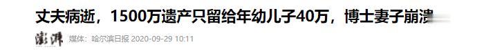 “夫妻俩一个比一个狠!”上海,男子病逝前立遗嘱,千万豪宅给父母,老家别墅给姐姐,而结发妻子林芳仅得一辆破车,6岁幼子只获40万教育基金,这份"偏心"遗嘱引发家庭巨变,林芳愤然带子离家,并断绝公婆探视权! 信源:哈尔滨日报 2020-09-29——丈夫病逝,1500万遗产只留给年幼儿子40万,博士妻子崩溃… 生活中总有一些故事,让我们不禁感叹命运的无常,在上海一个看似幸福美满的家庭中的悲剧不仅涉及了婚姻、亲情,还牵扯到了财产分配和法律纠纷,堪称现代都市生活的一个缩影。 故事的主人公是一对曾经恩爱的夫妻,丈夫王浩和妻子林芳,王浩是一位事业有成的企业家,而林芳则是贤内助加全职妈妈。 两人结婚十年育有一个6岁的儿子小宇,在上海这座繁华的大都市里,他们拥有一套价值千万的豪宅,事业蒸蒸日上生活美满幸福。 天有不测风云就在王浩42岁那年,他被诊断出患有晚期肺癌,这个噩耗犹如晴天霹雳,瞬间将这个幸福的家庭推入了痛苦的深渊。 面对丈夫的重病林芳表现得异常坚强,她不离不弃日夜照顾王浩,同时还要照看年幼的儿子,那段时间,林芳瘦了一大圈但她从未抱怨过。 在王浩生命的最后时光林芳更是寸步不离,为他擦拭身体推他到户外感受阳光,用自己的方式诠释着"不离不弃"的婚姻誓言。 可就在王浩离世后一场关于遗产的风波彻底颠覆了林芳的生活,当律师宣读遗嘱时在场的所有人都惊呆了。 王浩将价值千万的上海房产和公司大部分股份留给了父母,老家几百万的别墅和一笔现金给了姐姐,而林芳只得到一辆二手车,儿子小宇则只有40万元的教育基金。 这份遗嘱无疑是对林芳的巨大打击,更是剥夺了她和儿子未来的生活保障,悲痛和愤怒交织之下,林芳做出了一个决定:带着儿子搬离曾经的家,切断与王浩家人的一切联系。 林芳的决定引发了一系列连锁反应,王浩的父母失去儿子的痛苦还未平复,又面临无法见到孙子的困境。 他们多次上门探望却总是吃闭门羹,最终老两口走上了法律途径,希望通过法院判决获得探视孙子的权利。 这场官司引起了社会的广泛关注,有人同情林芳的遭遇认为她有权决定儿子的生活,也有人认为王浩的父母作为祖父母,应该有探视孙子的权利。 有网友表示道:"虽然遗嘱确实不公平,但完全切断孩子与祖父母的联系,对孩子的成长也未必是好事。”还有的网友提及:"我国现行法律并未明确规定祖父母的探视权,这个案子可能会成为一个典型判例。" 最终法院作出了判决,支持林芳的立场认为作为孩子的唯一监护人,她有权决定是否允许祖父母探视,这个结果让王浩的父母心如刀绞,他们失去了儿子如今连见孙子的机会也彻底失去了。 从法律角度来看,我国《民法典》第1086条规定:父母与子女间的关系,不因父母离婚而消除,离婚后,子女无论由父或者母直接抚养,仍是父母双方的子女,但对于祖父母的探视权,法律并未明确规定。 这个故事折射出现代社会中家庭关系的复杂性,一份看似不公的遗嘱,引发了一连串的家庭矛盾和法律纠纷,在处理家庭财产和亲情关系时,需要更多的智慧和包容。 生活中难免会遇到各种挫折和不公,但我们更应该学会用理性和爱心去化解矛盾,而不是让怨恨和偏见主导我们的行为。 无论是林芳还是王浩的父母,他们都是这场悲剧的受害者,也许只有放下成见,重新建立信任,才能为这个破碎的家庭带来新的希望。 如何在维护自身权益的同时不忽视他人感受,如何在法律框架下寻求情理兼顾的解决方案,希望通过这个故事,能够引发更多人对家庭关系、遗产继承、法律完善等方面的讨论和反思。