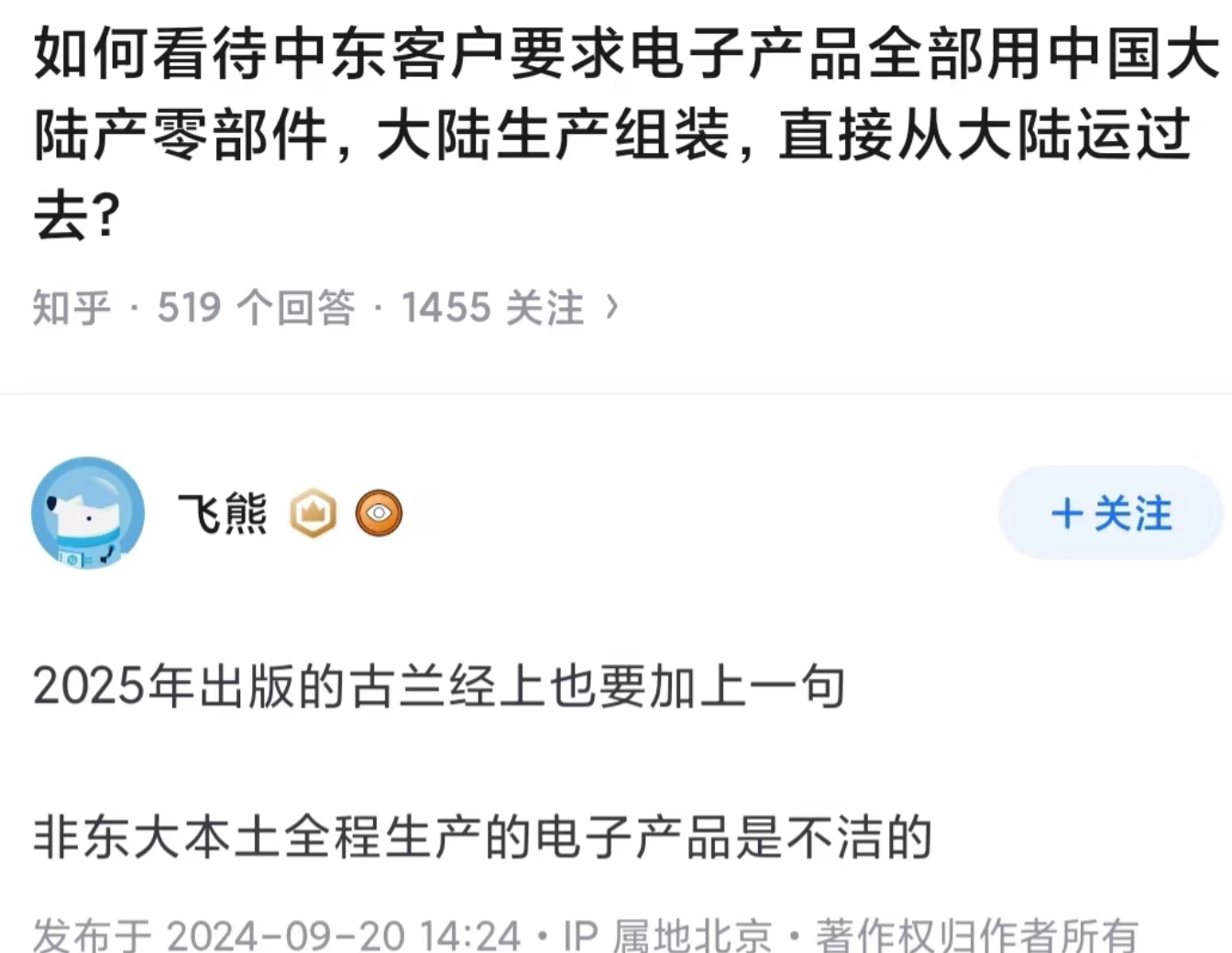 所以在9月19日开始,中国就已经接到了来自中东的询价单,除了正常货品要求外,还有三个要求:中国零件、中国组装、中国直发,杜绝以色列介入的可能!只有这样才能让中东人民放心使用,中国也有这样的能力,比如手机、对讲机以及市面上能找到的所有通信设备,中国都能制造,都能确保安全。