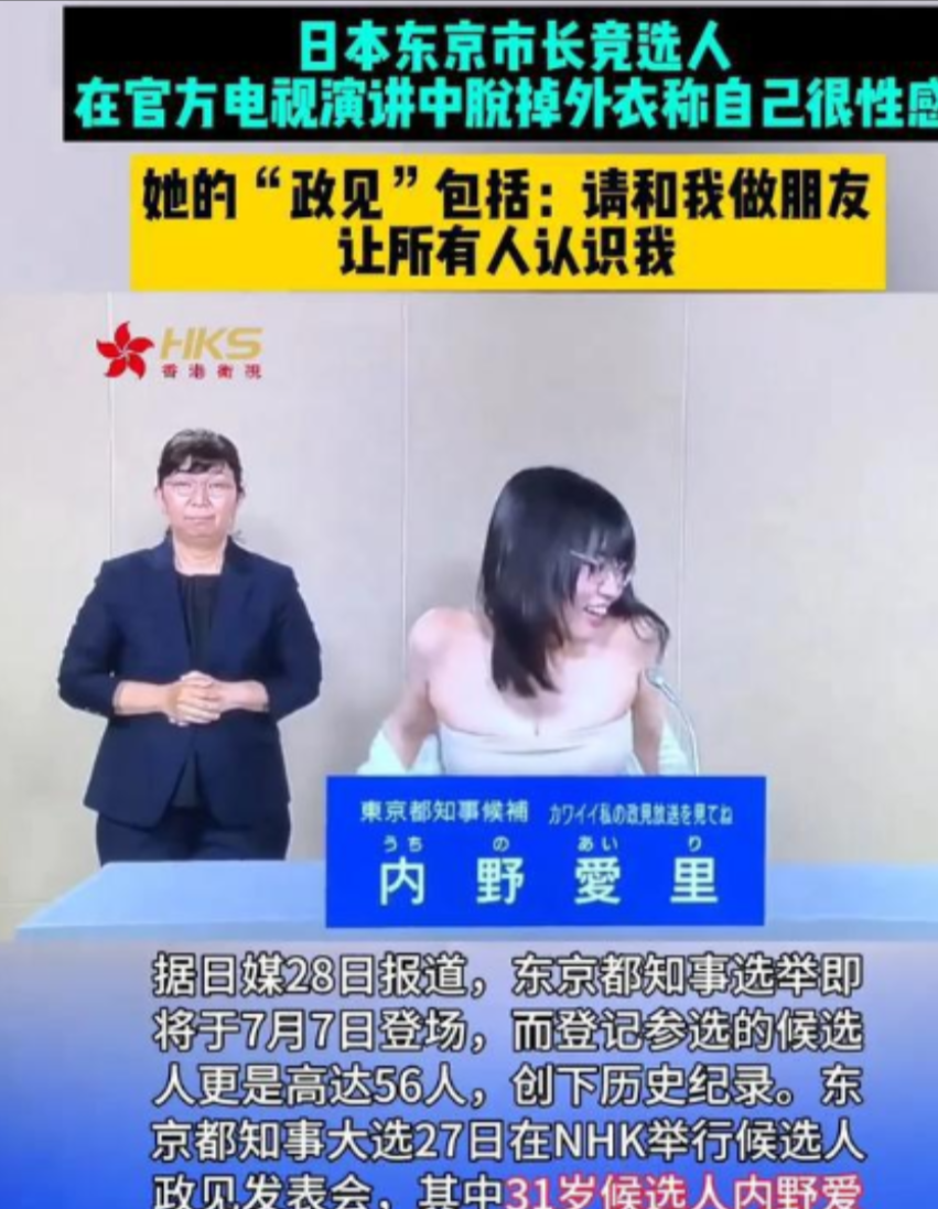 无论如何,内野爱里的"脱衣秀"演讲无疑为这场东京市长选举增添了几分戏剧性,它不仅成为网络热点话题,也引发了人们对政治人物形象、竞选策略等问题的思考。