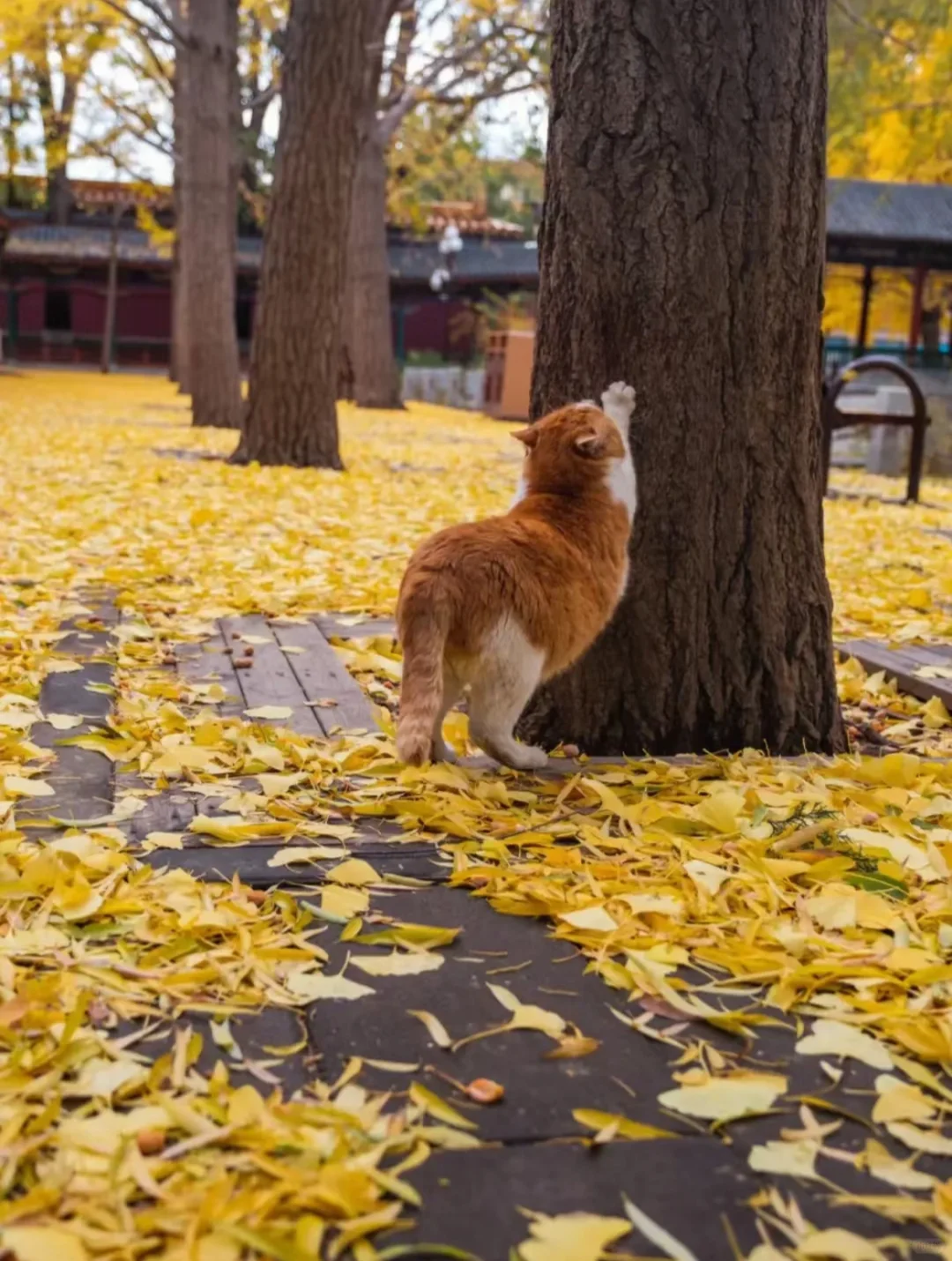 ▪️银杏地点:社稷坛南侧有一条银杏大道。这里有18株树龄在50年左右、树干直径达30至40公分的银杏树。深秋时节,银杏树叶变成金黄色,给地面铺上一层“金色的毯子”