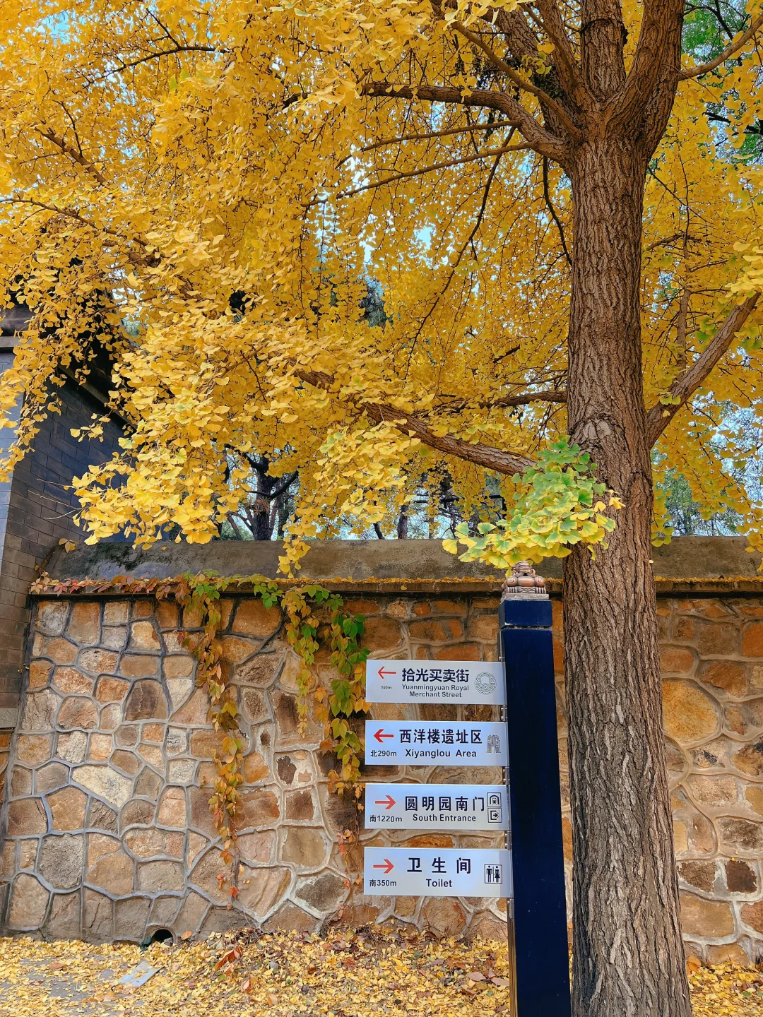 ▪️银杏位置:圆明园三园交汇处到西洋楼花园的废墟遗址西部有一条近千米的“银杏大道”