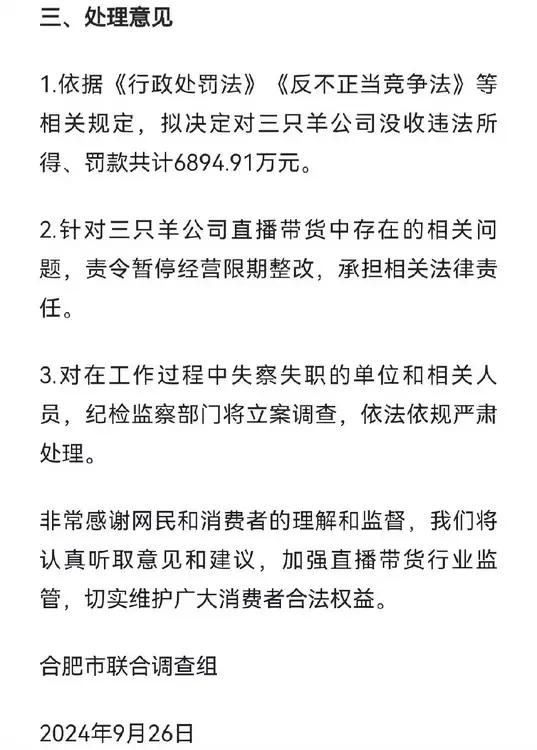 合肥市监局为直播售卖不合法商品打了个样,可以依样画葫芦,以后直播间所售商品不用担心质量,只要签好免责协议,委托方手续齐全就行,自己负责好宣传是否过份,是否虚假就行!只要注意言辞,不夸张基本上是O风险?这样带货不要太爽??#三只羊被罚没6894.91万元#