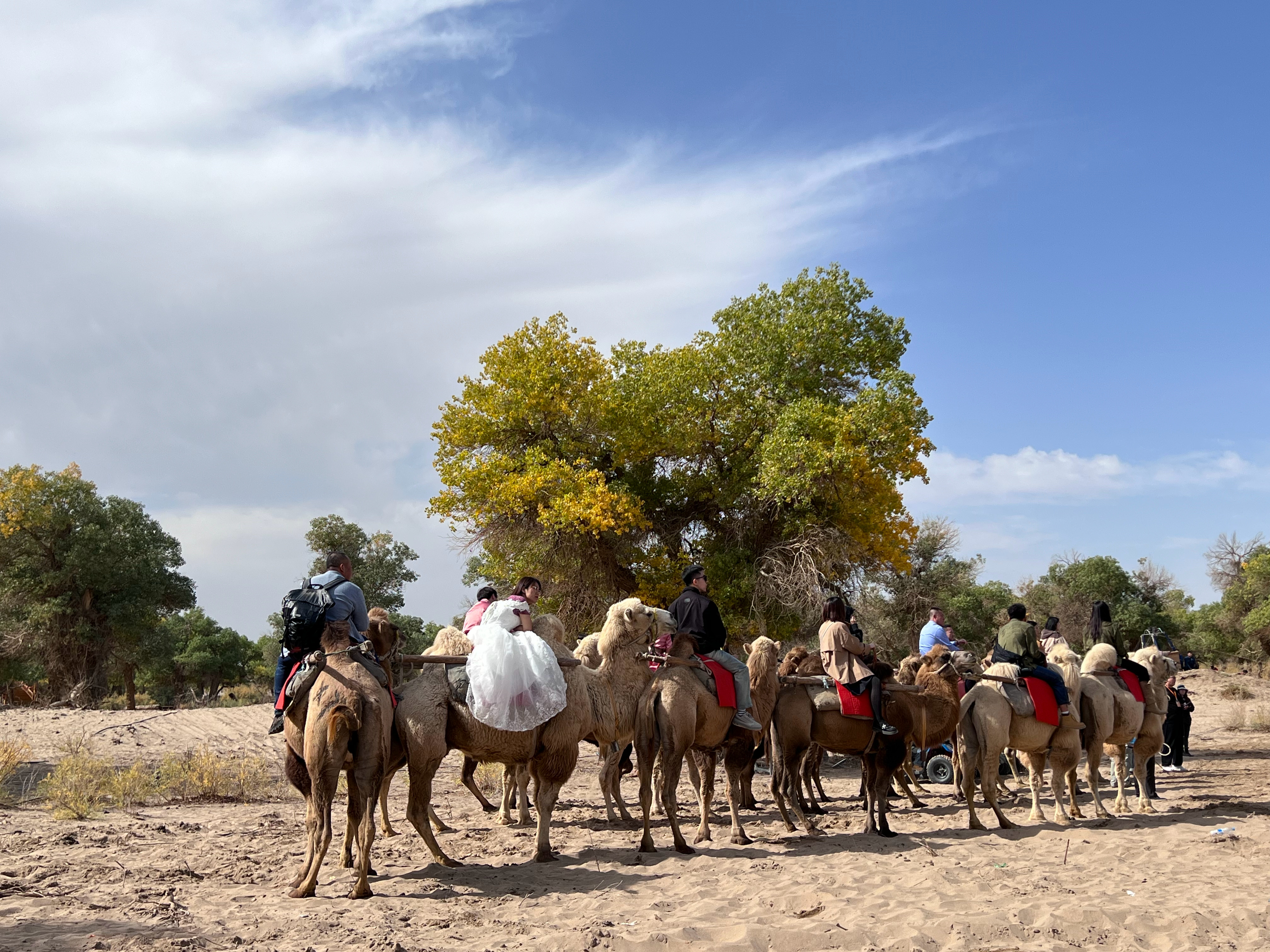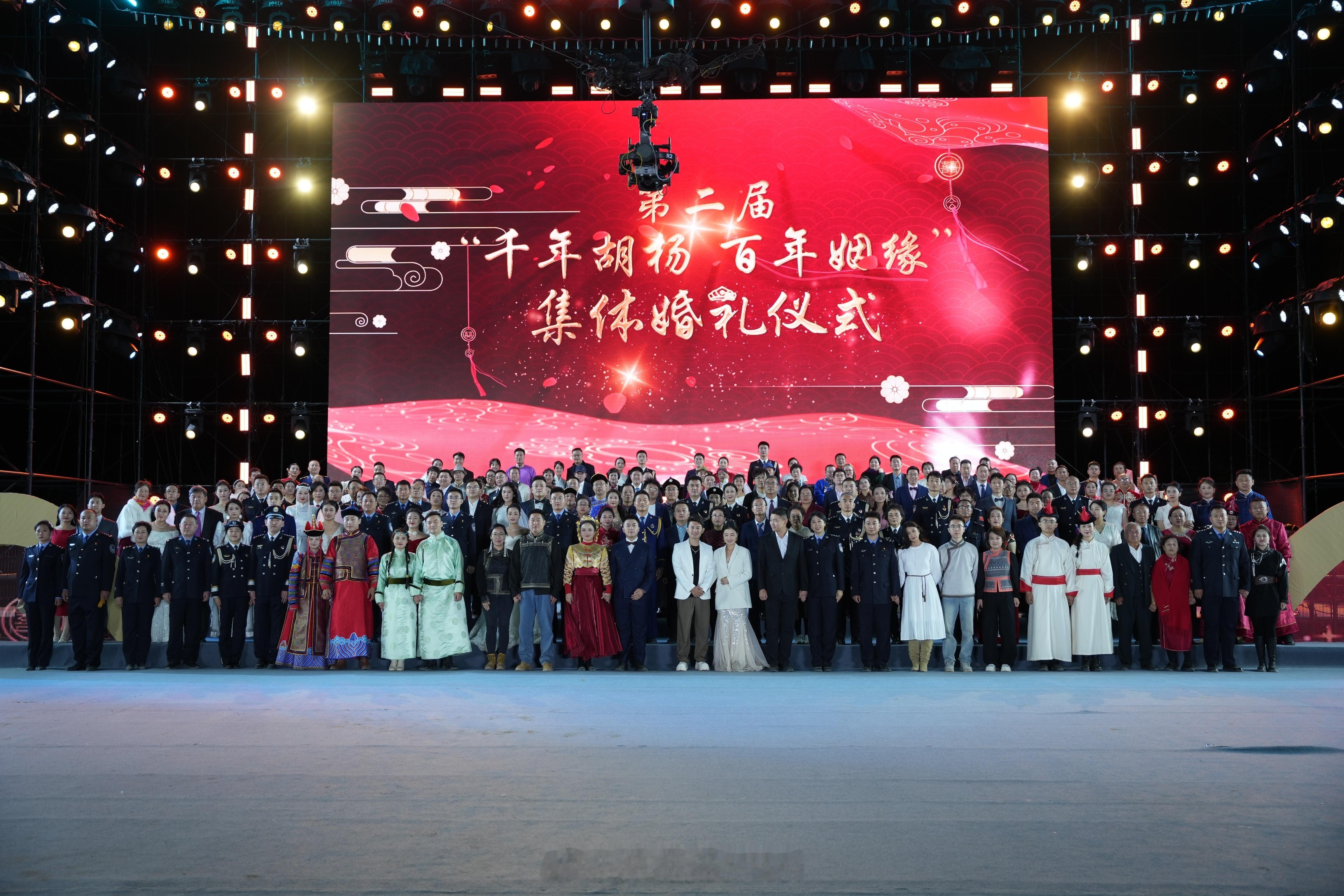 在胡杨林里参加集体婚礼,礼成。