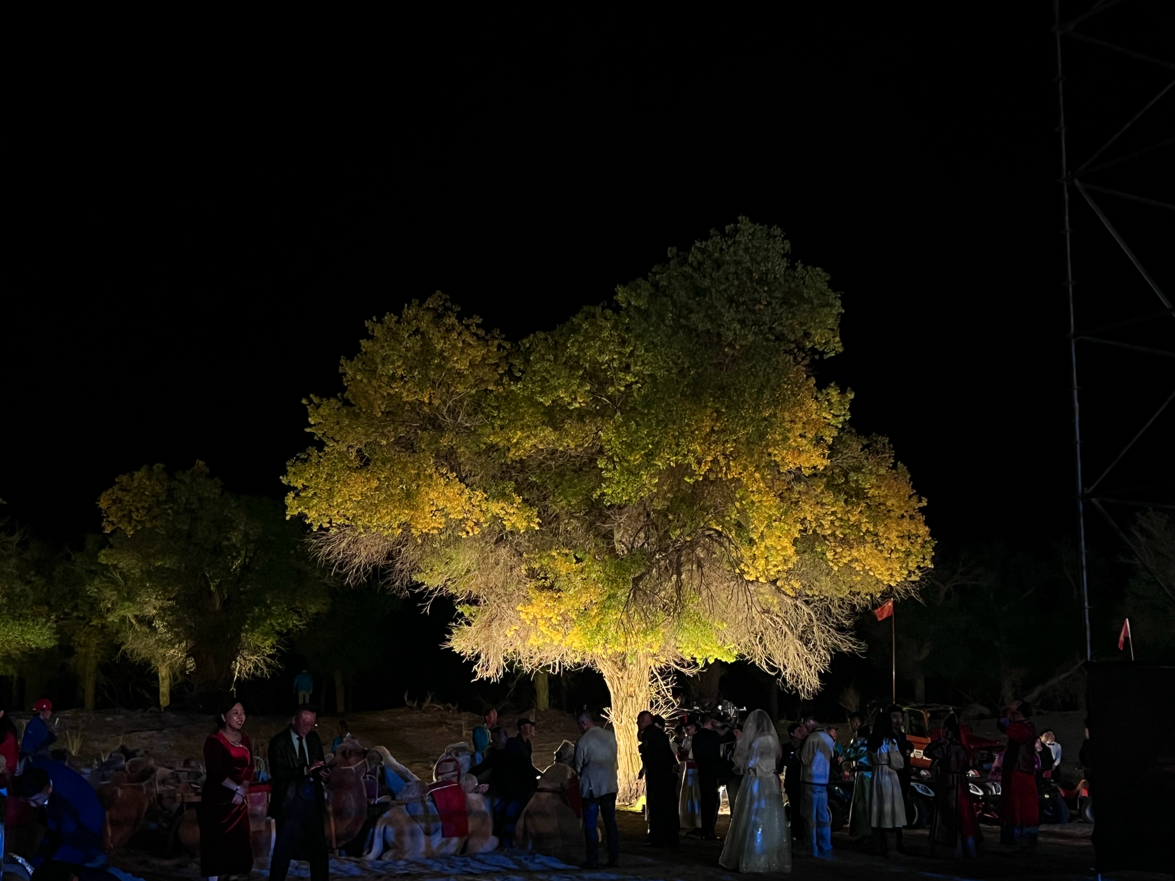 骆驼,沙滩摩托,热气球等各种出场方式。在胡杨林里参加集体婚礼,礼成。不倒的胡杨