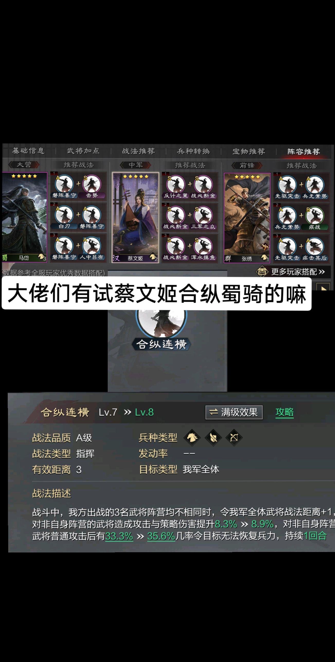 大佬们蔡文姬加强后也稳定破万?蔡文姬合纵蜀骑有尝试的吗