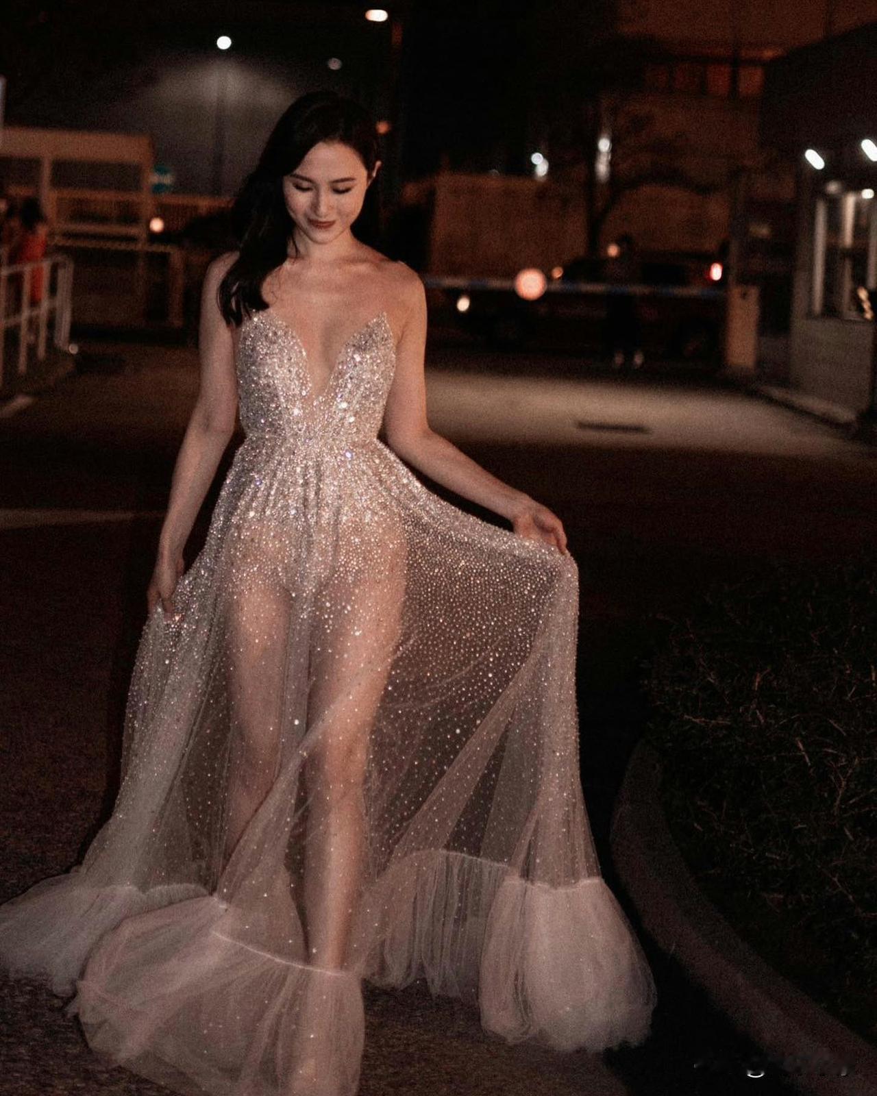 得宠港姐酒店玩真空挑战性感极限 风骚自转上围若隐若现极诱惑 30岁的邵初是2021年香港小姐季军暨「友谊小姐」,尤其深得总经理曾志伟宠爱,曾获对方钦点到珠海出席楼盘活动,一度被指极速上位成为「曾女郎」。 本身是中越混血儿的邵初,虽然五官标志,但就因为样貌偏成熟,惨批做「老饼港姐」,邵初坦言最初都曾介意被弹「好样衰、好老、好肥」,但她没因此被击败,反而更加努力keep fit,用成绩说话。而最近,邵初更由主持杀入剧集,继加入王牌处境剧《爱·回家之开心速递》後,稍後的台庆剧《巾帼枭雄之悬崖》她也有份参与,当中更与视后胡定欣有不少对手戏,可见备受器重。 除了工作上愈战愈勇,邵初的社交平台也穿得愈来愈火辣,似以实际行动报答粉丝。近日邵初与一班好姊妹悉心打扮到酒店开P,事後她於IG分享了多张性感靓相和片段,喷血程度爆灯。片中邵初穿上一条挂颈设计的超短裙,露出一双白滑美腿,而裙面则贴满闪钻,散发高贵优雅气质之余也不失性感。 邵初将酒店房外的通道变成T台,在镜头前搔首弄姿,展示性感自信的一面,无论前、侧、後看都充满睇头,尤其她侧身的时候,上围若隐若现可见是真空上阵,震撼网民眼球,纷纷心心眼并留言激赞:「哗!靓到可以出国际杂志个封面la」、「好优雅」、「美丽动人」。