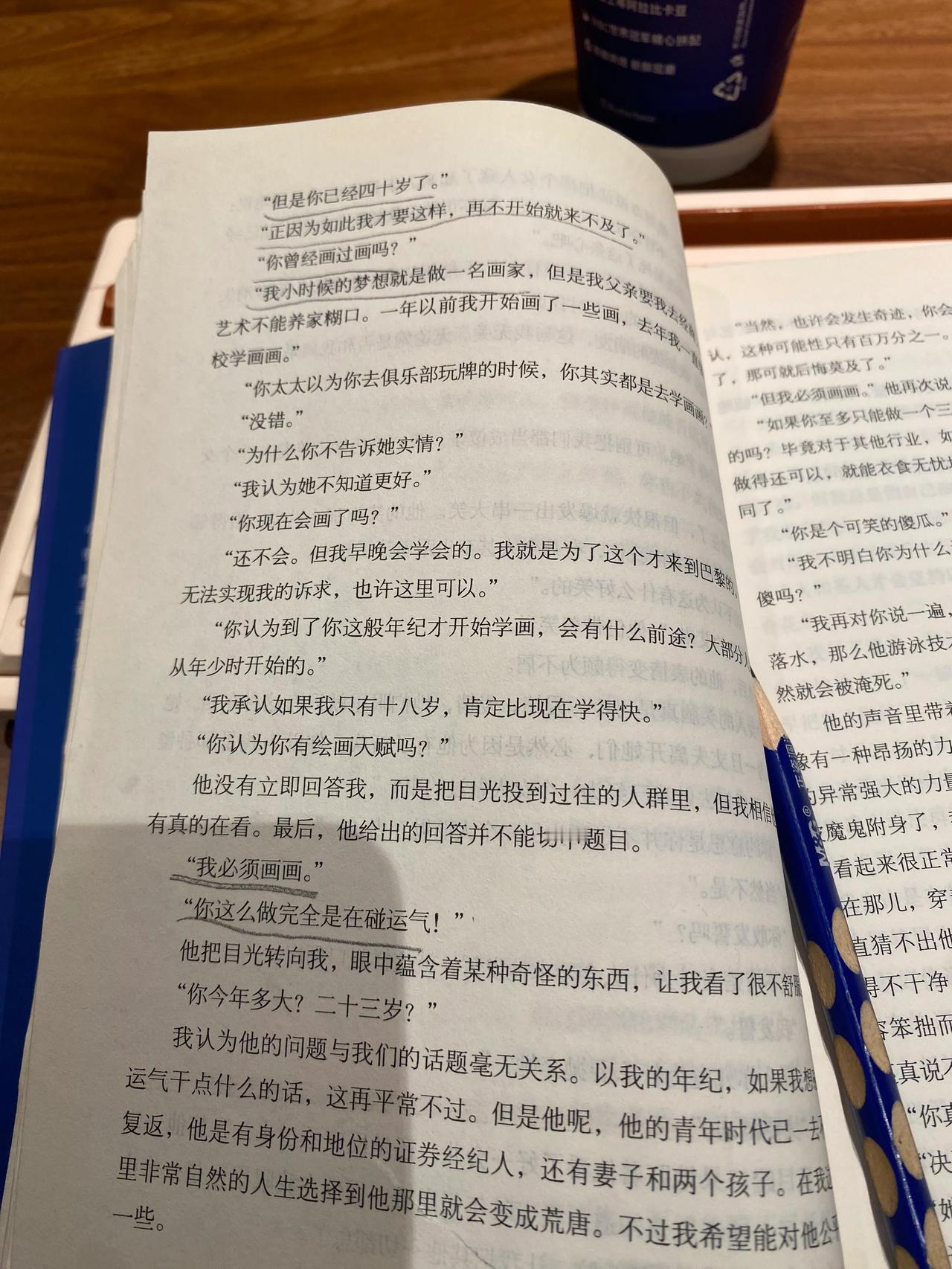 “但是你已经四十岁了。” 以下是一段来自《月亮与六便士》中“我”与查尔斯的对话。 “我”受艾米之托,去巴黎找离家出走的查尔斯。 我:“你的意思是你并不是因为另一个人而抛弃妻子?” 查尔斯:“当然不是。” 我:“你敢发誓吗?” 查尔斯:“我发誓。” 我:“那你究竟为什么要抛弃她?” 查尔斯:“我要画画。” 我目瞪口呆! 我:“但是你已经四十岁了。” 查尔斯:“正因为如此我才要这样,再不开始就来不及了。” 我:“你曾经画过画吗?” 查尔斯:“我小时候的梦想就是做一名画家……” 我:“你认为你有绘画天赋吗?” 查尔斯:“我必须画画。” 我:“你这么做完全是在碰运气!” 无论“我”怎么怀疑和劝说, 查尔斯再次说:“但我必须画画。” …… 这一段对话看起来很过瘾,“我”以正义之身劝说一个不负责任的男人为了家庭和身上的责任回归家庭。 但是这个顽固的“迷途者”已经无可救药了。 我想,一个人的理想真的能超越世俗里的一切吗? 我想起自己辞职前的那种心情,为了摆脱工作,似乎也有那种不管不顾的没有责任感的样子,我为此深深自责过。 后来我把这种自责转化成了一种写作的动力,甚至有种视死如归之感。 我觉得再次拿起这本书是上天的安排,它教我要更笃定一点去做自己想做的事。 所以,从某种程度上,它缓解了我一部份的压力。 就像查尔斯说的那样:正因为四十岁了,怕来不及了,所以才要赶紧开始啊! 换句话说,四十岁了 又怎样呢?!