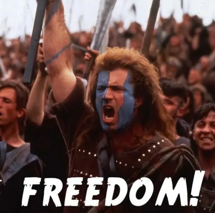 因为“反犹言论”被犹太财团封杀的好莱坞巨星梅尔·吉布森,最近在社交账号上发文称:“很快就要大结局了,他们也知道这一点,这就是为什么他们想要毁掉妨碍他们的一切。” 并随文附上以色列国旗变形的倒计时图片,其中含义,明眼人一看便知。 想当年,梅尔·吉布森在自编自导的电影《勇敢的心》中借着主角华莱士之口喊出的那句:“Freedom!!!(自由!)”至今仍振聋发聩。现在想想,那“自由”并不是西方普世价值宣扬的那种抽象的、空洞的、形而上学的“自由”,而是非常具体的、现实的、切肤之痛的“自由”! 不仅梅尔·吉布森需要这种“自由”,被犹太财团洗脑、控制的美利坚人民、被以色列压迫、欺辱、屠杀的中东人民也需要那一声响彻云霄的呐喊——“自由!!!”