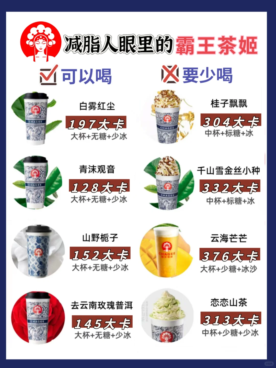 霸王茶姬减脂红黑榜👉可以喝VS少喝‼️