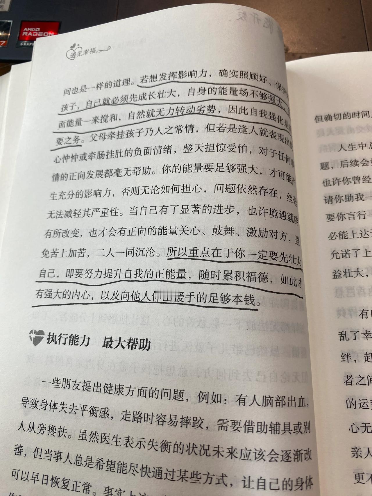 世间的一切都与能量开发有关。 在《遇见幸福》这本书中,作者说,有位修习幸福潜能开发多年的朋友,对诸事都能保持“爱与感恩”之心态,唯独对自己的患有自闭症和抑郁倾向的儿子,劳心焦思、百般担忧。 于是向作者求教如何“放下”,怎样才能一边照顾好儿子,一边又能不影响自己的生活秩序。 作者表达了一个观点,若想发挥影响力,确实照顾好、保护好孩子,自己就必须先成长壮大,自身的能量场不够强大,负面能量一来搅合,自然就无力转动劣势,因此自我强化是首要之务。 意思就是只有你自己先壮大起来,积极努力提升自我的正能量,随时累积福德,如此才有强大的内心,以及向他人伸出援手的足够本钱。 这不禁让我想到自己平时与女儿的相处,有时候我觉得她胆小,内向,敏感,脾气火爆,很多时候我都不是心平气和的引导她,而是自己先发脾气,希望用自己的“权威”来震慑住她,让她乖乖听话。 早上她赖床,不好好吃早饭,无论我说多少遍都仿佛没有听到一样,她的这些坏习惯又何尝不是自己平时帮助她养成的。 因为我有时候也喜欢赖床,有时候也不吃婆婆做的早饭,反观我自己,我自己都没有做好的事情却要求孩子做到,这哪里是一个妈妈该有的样子。 我本身就处于能量低的状态,又如何帮助她养成良好的习惯和积极主动的行为? 所以,当我们在要求孩子做到更好时,先想想自己做的够不够好,自己的能量是不是积极的强大的。 ——阅读孙泰德《遇见幸福》 #寻找热爱表达的你#