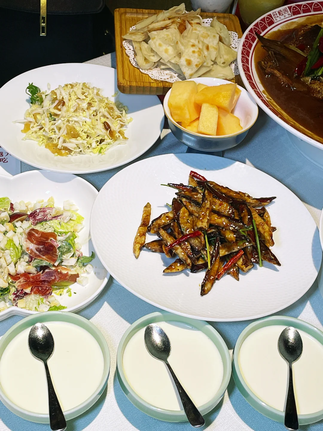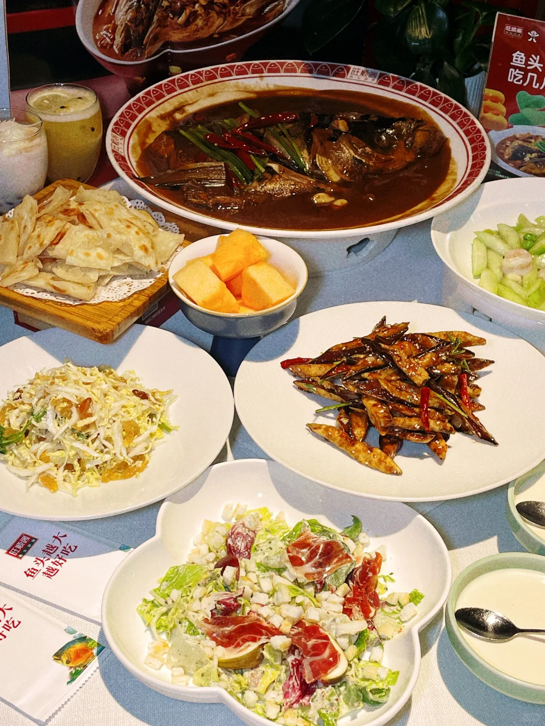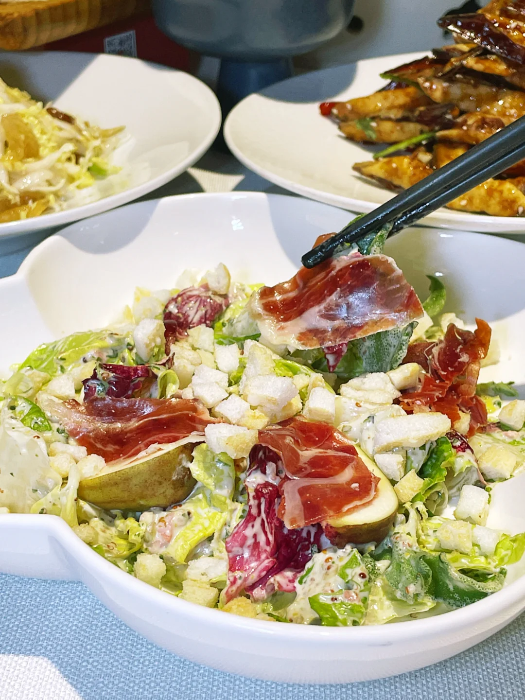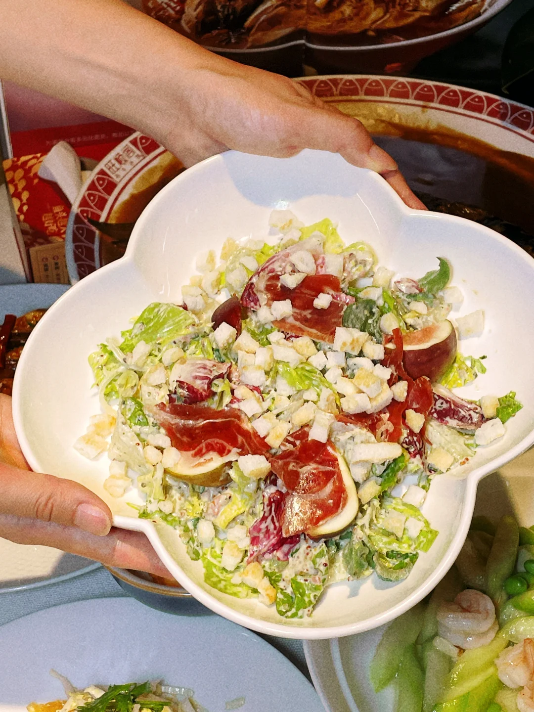 🥗旺顺雪饼凯撒沙拉:这道沙拉很有特色,大块儿的无花果,搭配上青菜🥬和酥脆可口的旺旺雪饼,清爽解腻,是大鱼头的完美搭配。
