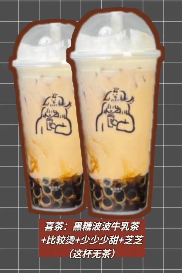 4️⃣喜茶:黑糖波波牛乳十少少少甜+芝芝十比较烫(这杯无茶)