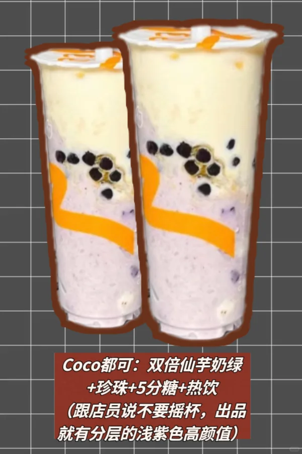 9️⃣Coco都可:双倍仙芋奶绿+珍珠+5分糖+热饮