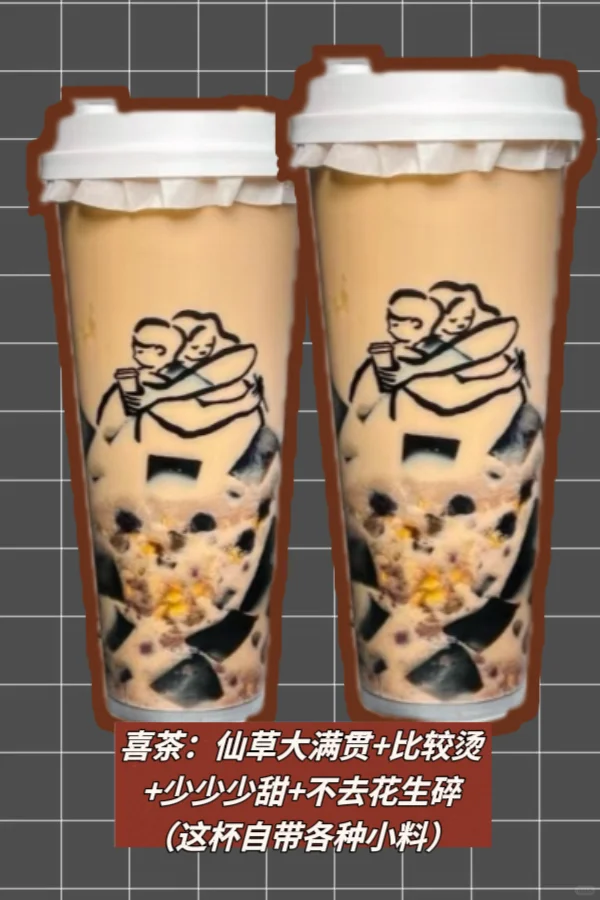 5️⃣喜茶:仙草大满贯 +比较烫十少少少甜+不去花生碎(这杯自带各种小料)