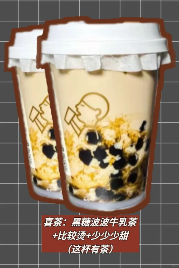 3️⃣喜茶:黑糖波波牛乳茶十比较烫十少少少甜(这杯有茶)