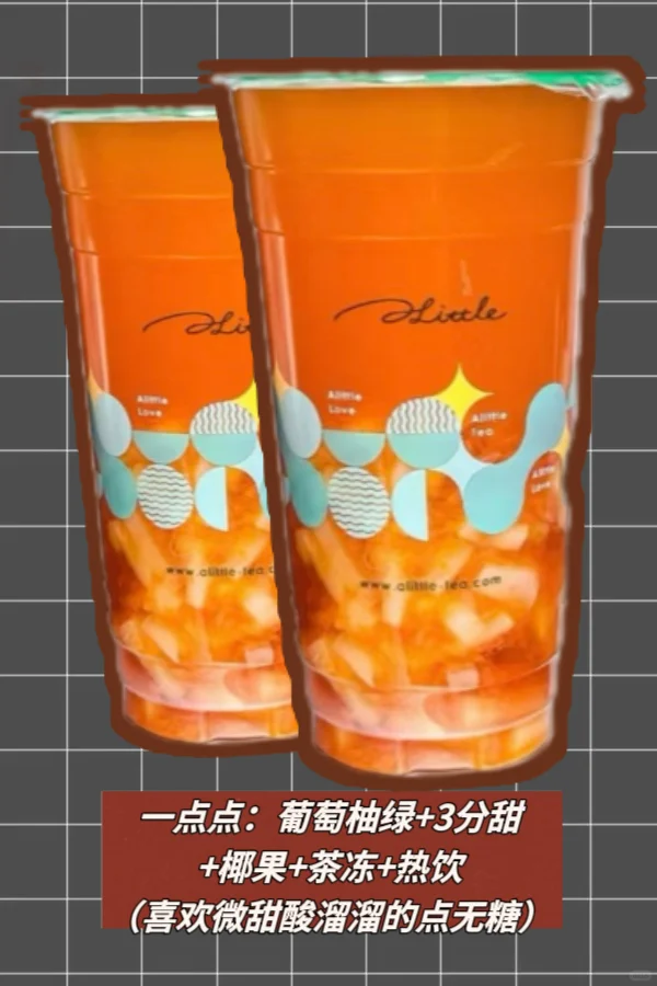7️⃣一点点:葡萄柚绿+3分甜十热饮+椰果十茶冻(喜欢微甜酸溜溜的点无糖)