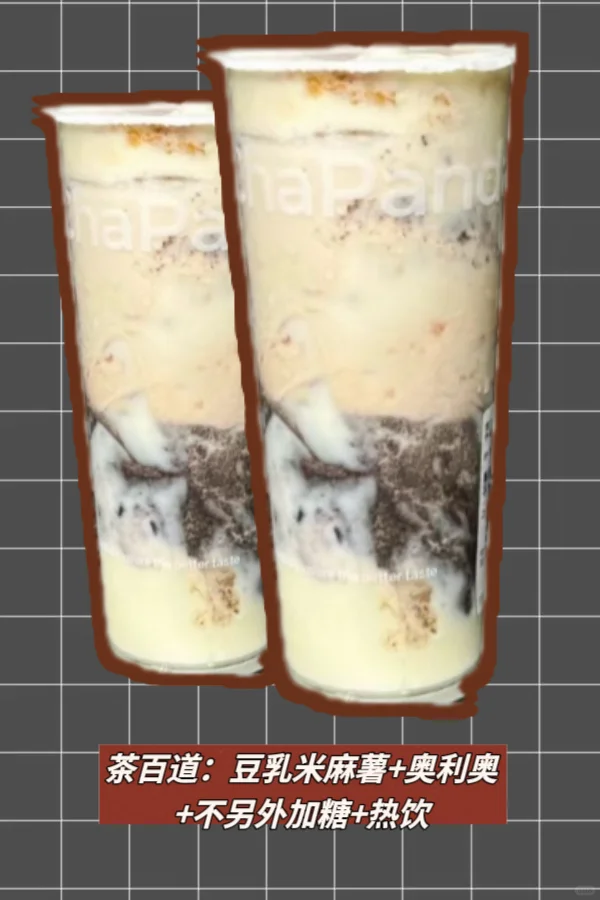 1️⃣茶百道:豆乳米麻薯+奥利奥+不另外加糖十热饮