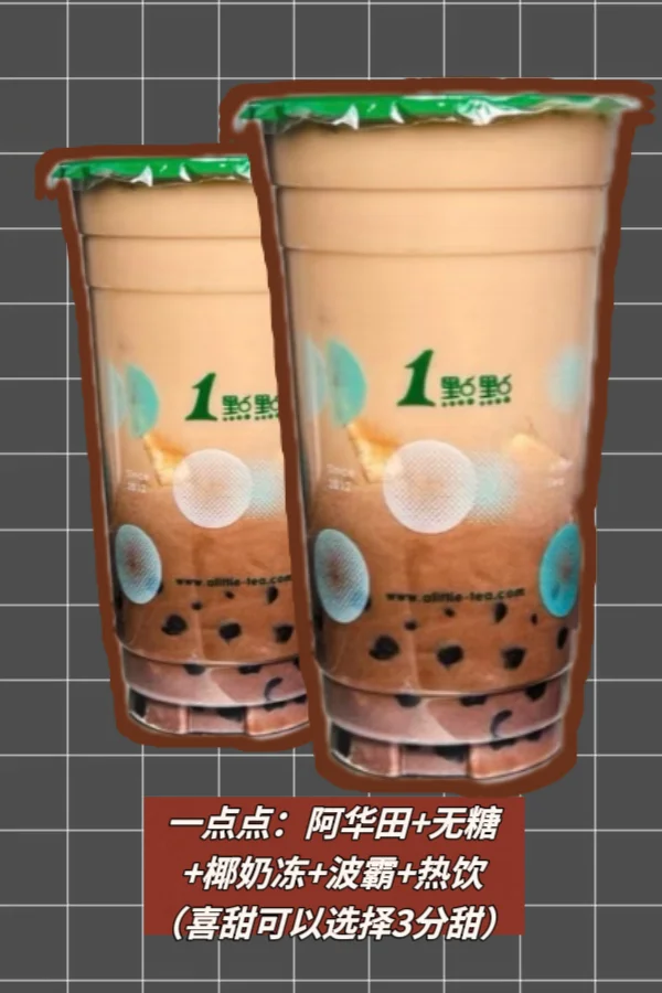 6️⃣一点点:阿华田十无糖十椰奶冻+波霸+热饮(喜甜可选3分甜)