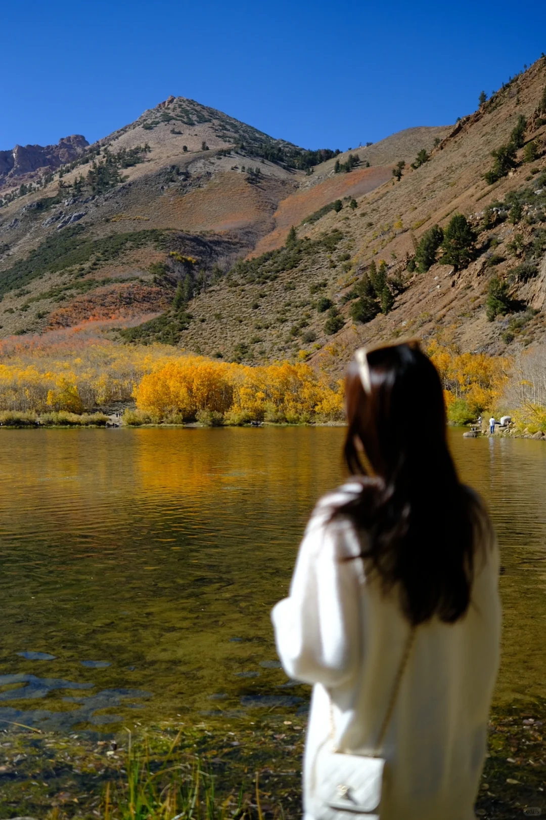 - bishop那边已经掉了很多,但是mammoth lake这边还刚到peak 甚至还能再等等更黄,有的地方还有点浅绿。