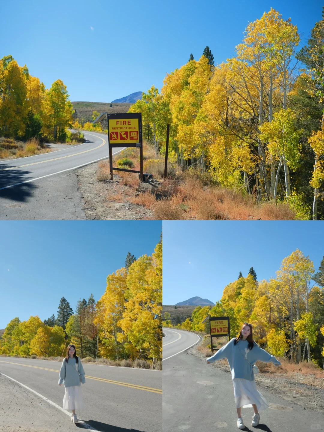 TLDR:金色树林和叶子在mammoth lake比较多,bishop的叶子已经掉了很多颜色比较深。