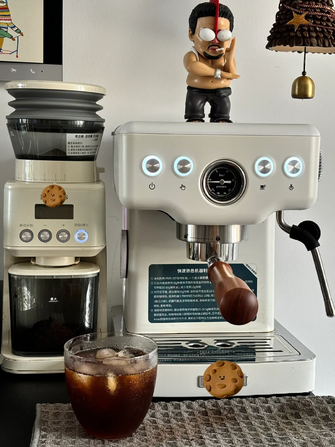 我和队友都很爱喝咖啡,每天必备。目前这台咖啡机可以满足我们家庭日常需求。最近配套的手柄坏了换了个无底手柄。太难把控了总到处喷像花洒一样[哭惹R]浪费我好多豆!频繁试!还好我早两个月在挖到性价比很高的豆,30+ !500g !very very良心!不好来骂!