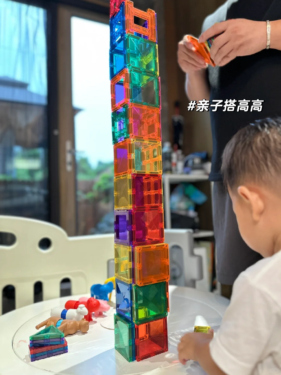 磁力片也适合亲子一起搭出不同的形状,欢乐多多😄😆