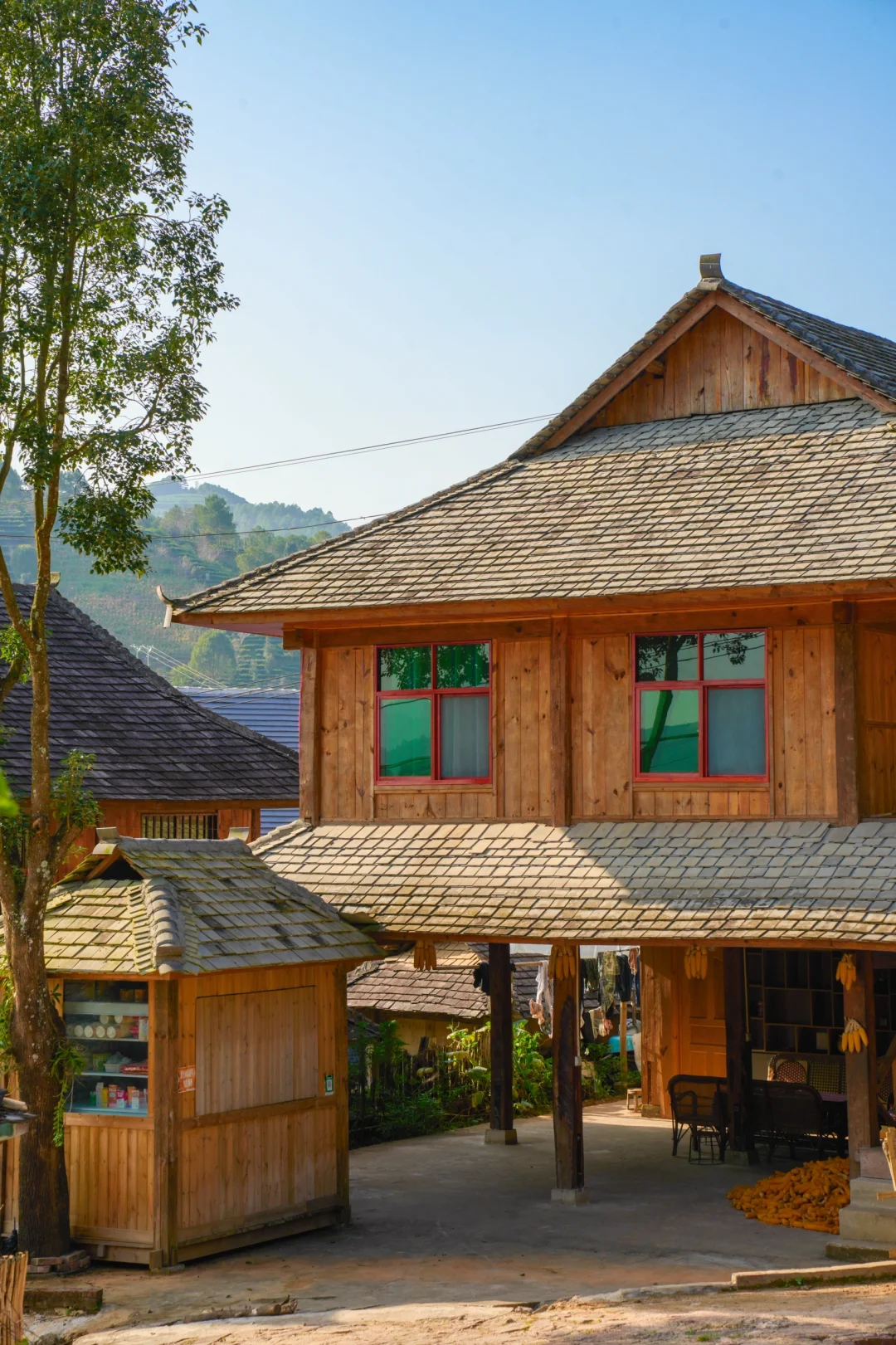 走进老达保景区,映入眼帘的是错落有致的传统民居。这里都是古朴的木楼,现在寨子里房屋虽多为新建或翻新,但结构和营造技艺依然遵循传统,充满民族特色,又有满满的生活气息。
