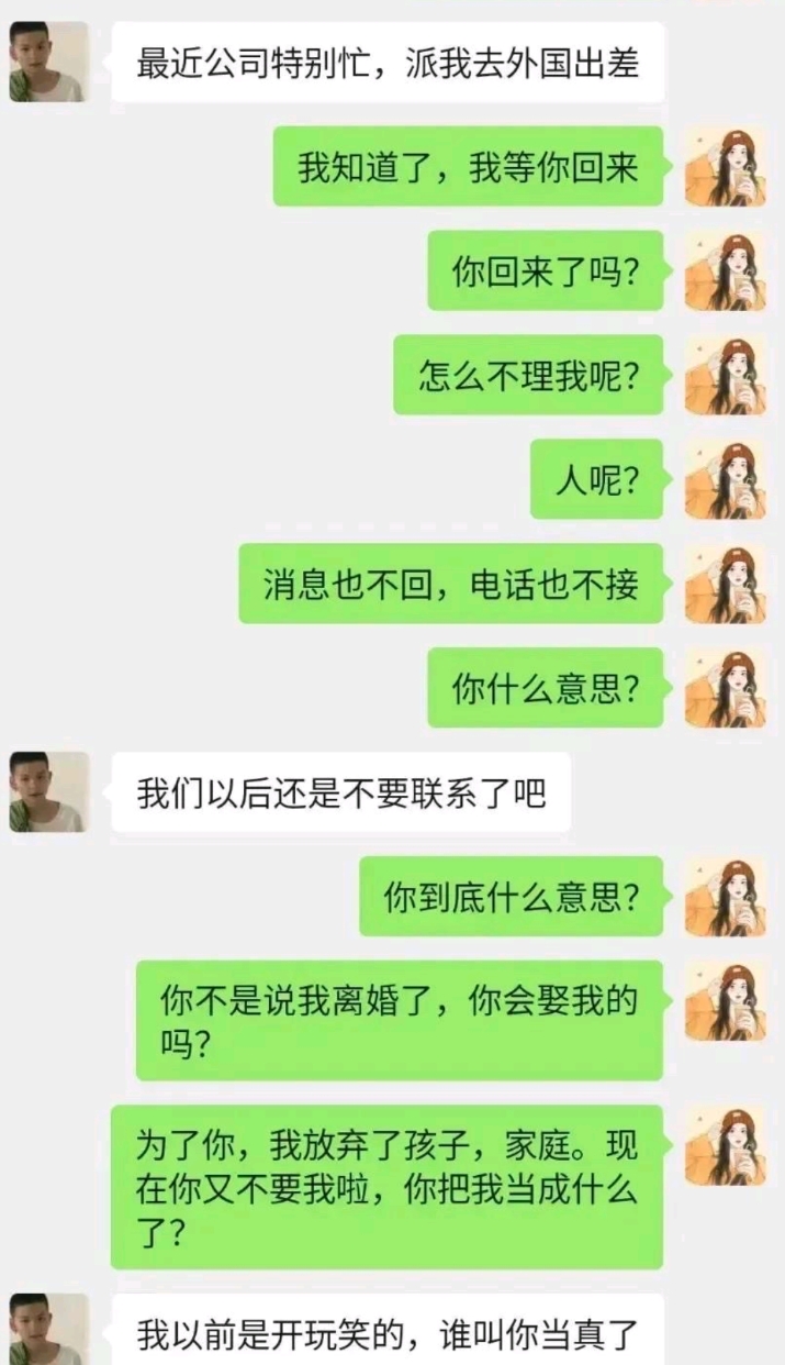 河南女子出轨竟遭“戏弄”,聊天记录的曝光瞬间激起千层浪! 那被曝光的聊天记录,恰似一面澄澈的明镜,清晰映照出女子于情感中的盲目无措,也无情揭露了男子在感情里的轻佻浮夸。女子对爱情的炽热渴盼,沦为男子手中随意摆弄的棋子,一段原本就摇摇欲坠的关系,至此愈发脆弱不堪、支离破碎。 网友们的同情之声如潮涌般此起彼伏,既为女子的不幸遭遇扼腕叹息,又对男子的薄情寡义加以谴责,这场热议始终未曾停歇。 女子在这段感情中被“玩弄”,这不单单是其个人的悲剧,更是对纯粹真诚爱情的肆意玷污,令人心生寒意。 女子出轨的行径,追求刺激所带来的恶果,最终致使她人财两空,着实令人倍感惋惜。 社交媒体上的激烈讨论,折射出当下现代人于感情中的彷徨迷失,对爱情真谛的苦苦追寻,对刺激的盲目追求,对风险的漠然忽视。女子的这番遭遇宛如一面醒目的警示牌,时刻提醒着人们在情感的道路上务必谨小慎微。无论出轨是出于何种缘由,真心付出所遭受的伤害皆难以规避,情感的天地需要更多的理智思考与自我反省。在这信息爆炸的时代,爱情更需我们擦亮双眸,做出明智抉择,全力保护自我,谨防掉入情感的陷阱。 总之,此次出轨事件的曝光,绝非仅仅是个人情感的凄惨悲剧,更是整个社会道德层面的深刻反思,警醒着每一个人在爱情当中保持头脑的清醒以及对自我的珍爱。